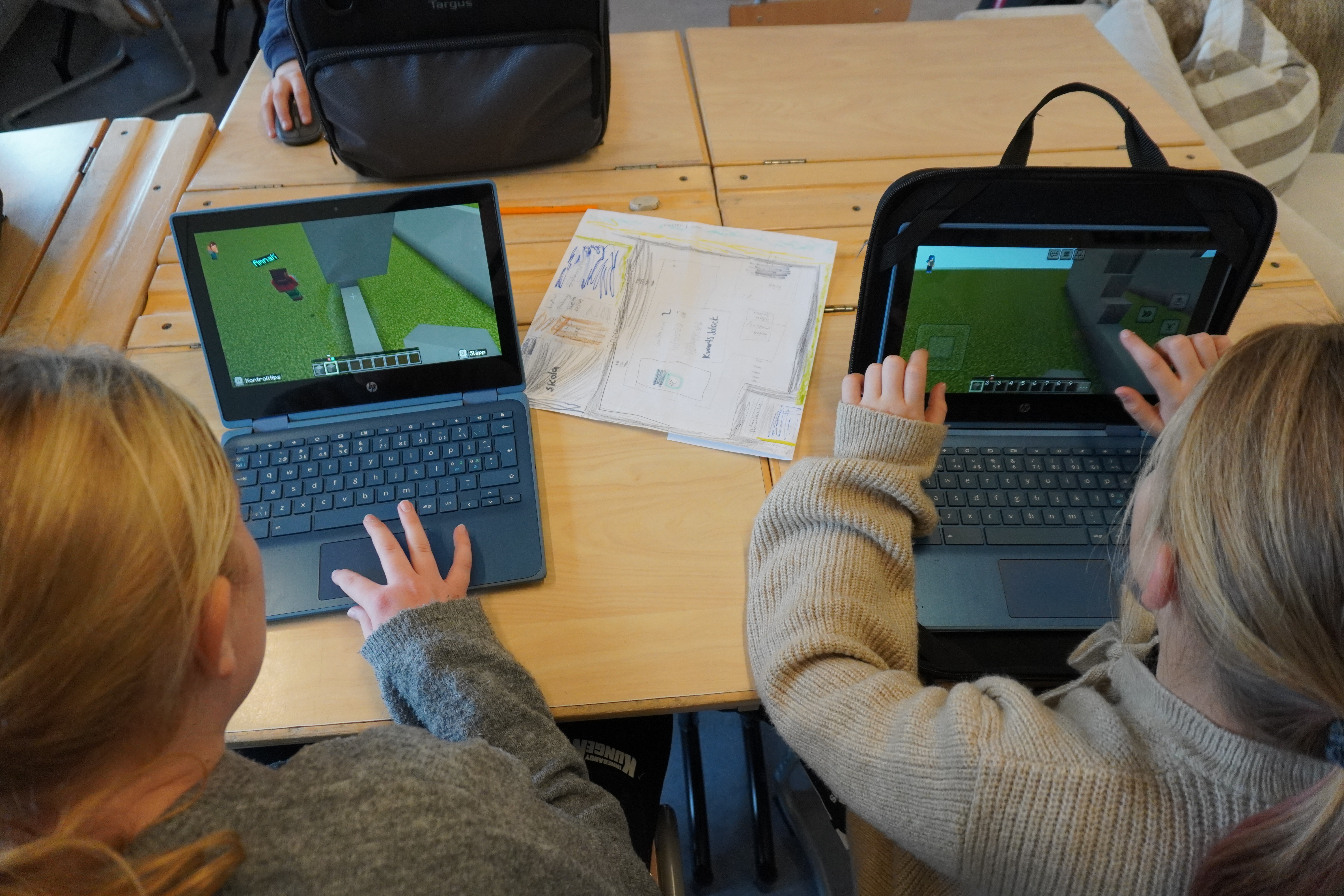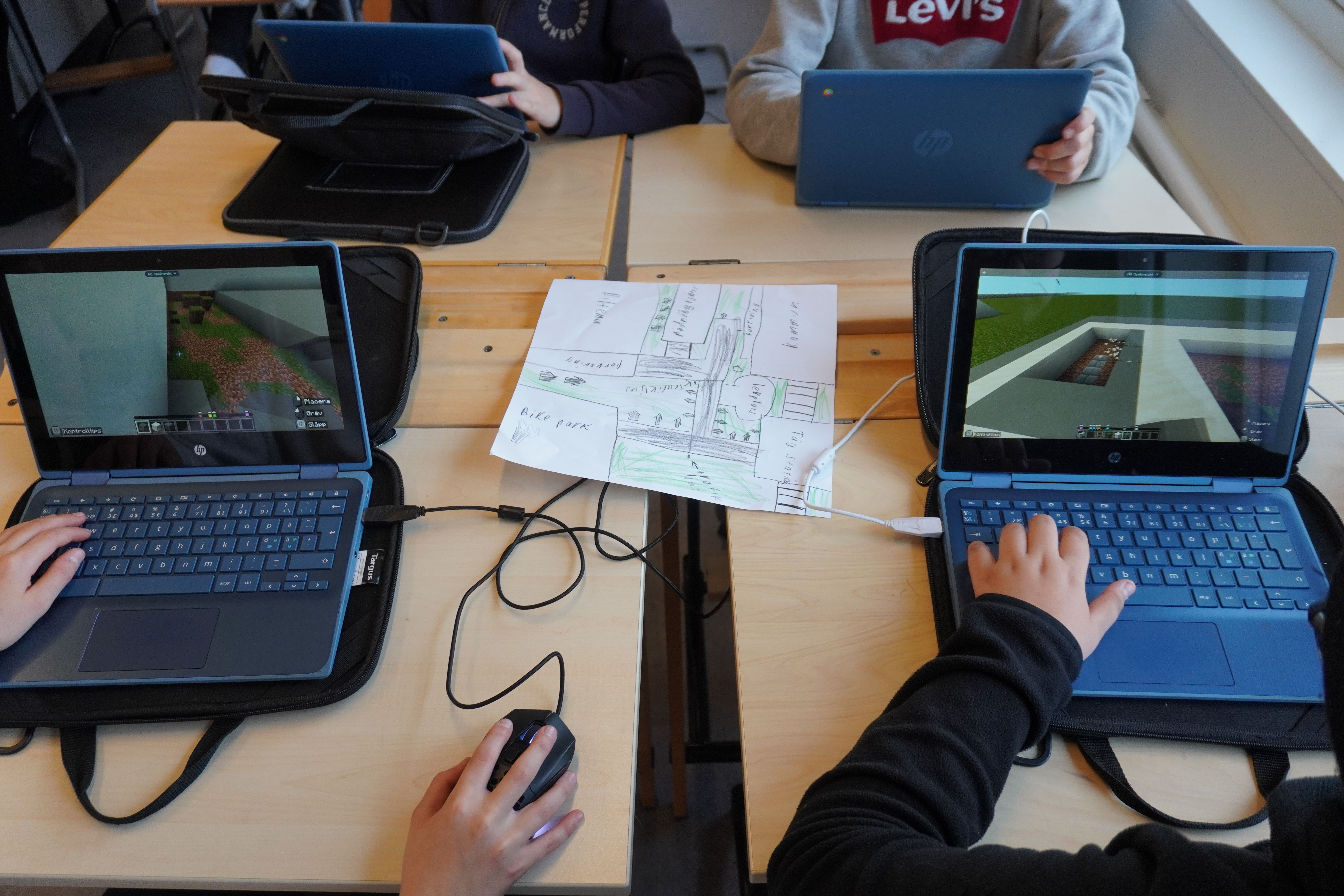 ”Jag spelar Minecraft på fritiden, så jag känner mig bra på Minecraft Education. Det känns bra att kunna hjälpa mina kompisar med gaming-kommandon och tips. Vi gör ju det här tillsammans”, berättade en elev i klassen och en annan fyllde i: