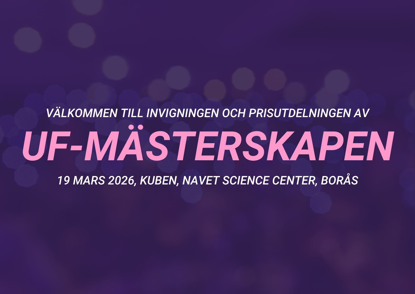 Den 19 mars 2026 hålls det regionala UF-mästerskapen på Textile Fashion Center samt Navet Science Center i Borås. Dagen startar med en invigning där dagens första priser delas ut. Sedan är det dags för finalisterna att träffa juryn för företagspitch efter det blir det överläggning och juryn ska utse våra vinnare. Vinnarna presenteras samma kväll under prisutdelningen. Du som utomstående får såklart komma och ta del av denna dag, anmälan nedan.
