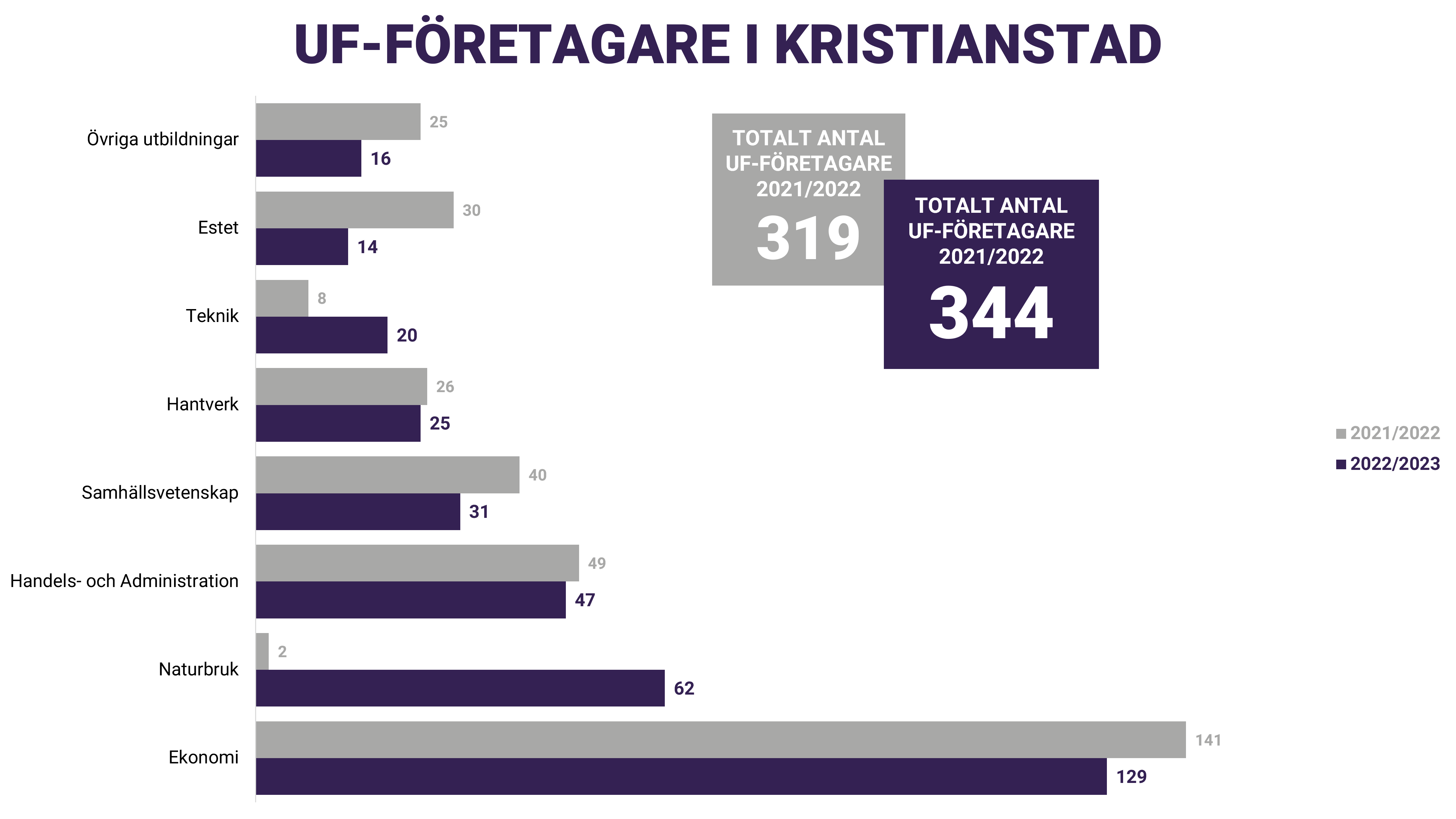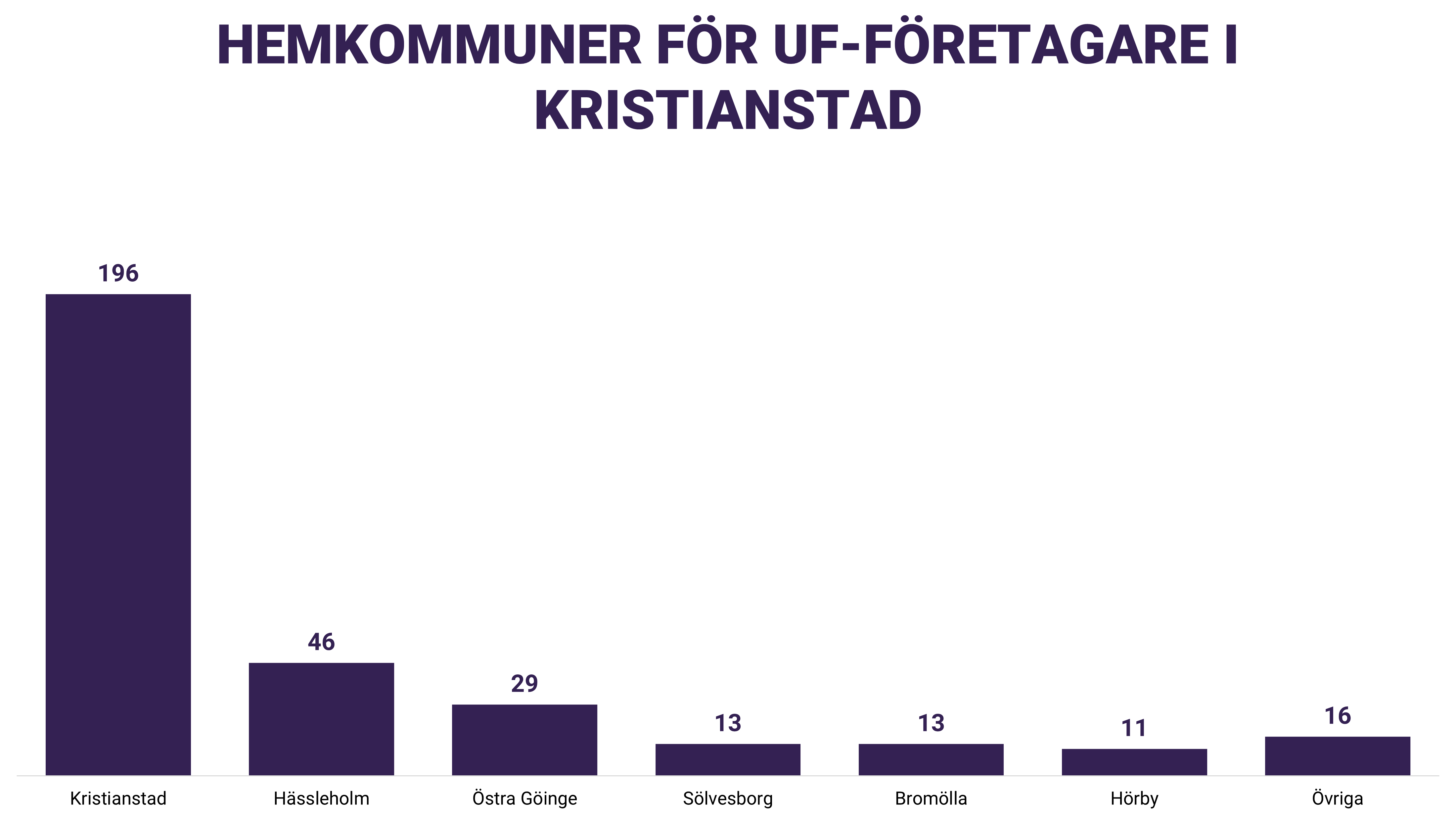 För första gången på tre år så minskade antalet UF-företagare i Skåne. Till stor del beror det på att stora skolkoncerner valt att flytta UF-kursen från årskurs 2 till årskurs 3 och därmed kan vi återigen räkna med dessa skolor 2023/2024. Trots en viss minskning så kan vi fortsatt konstatera att över 3600 gymnasieelever i Skåne får testa på att starta, driva och avveckla företag under sin skolgång. Vår kommunspecifika statistik visar också var större insatser behövs, kopplat till UF-företagande och entreprenörskap, under kommnande läsår.