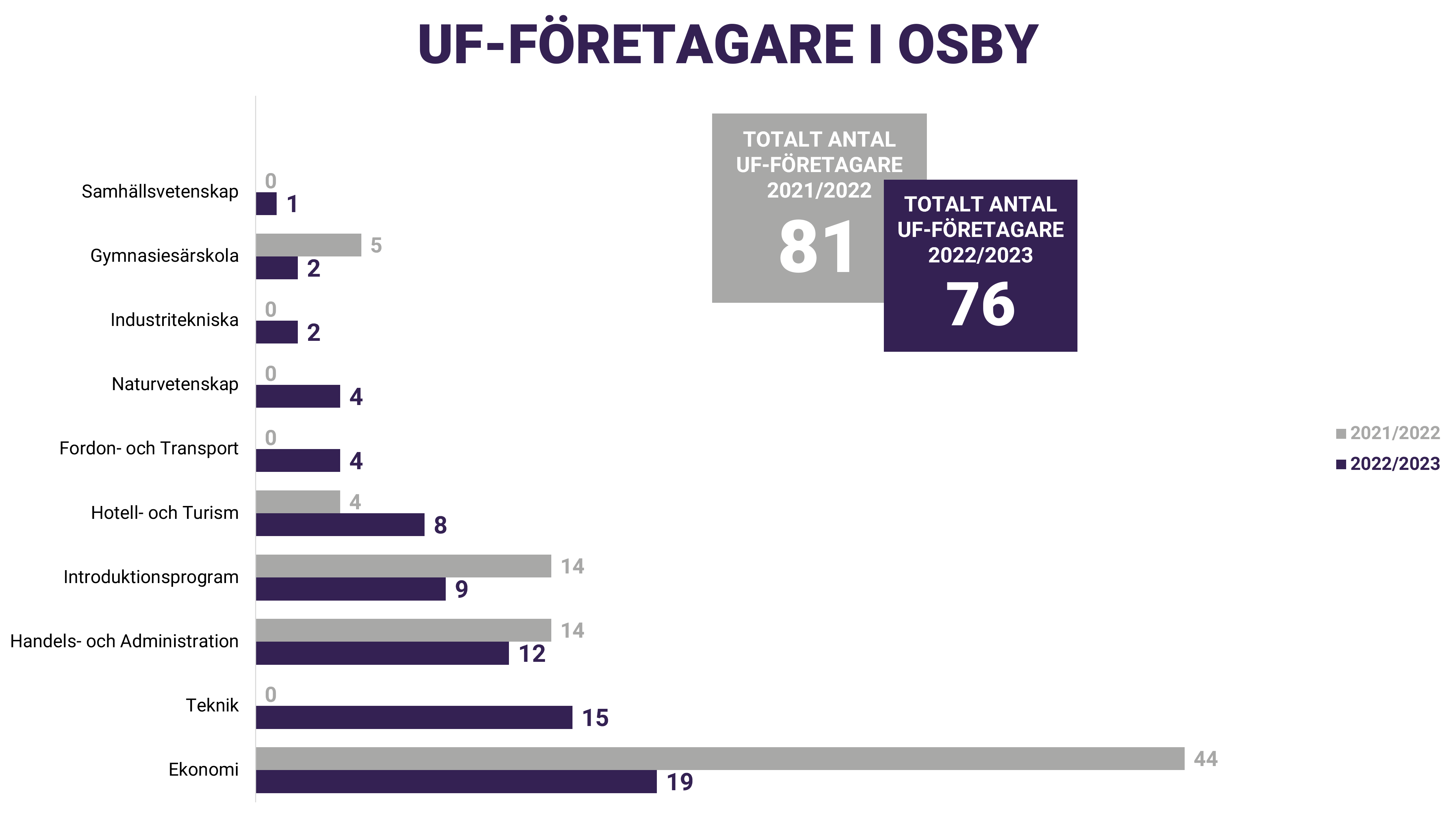 För första gången på tre år så minskade antalet UF-företagare i Skåne. Till stor del beror det på att stora skolkoncerner valt att flytta UF-kursen från årskurs 2 till årskurs 3 och därmed kan vi återigen räkna med dessa skolor 2023/2024. Trots en viss minskning så kan vi fortsatt konstatera att över 3600 gymnasieelever i Skåne får testa på att starta, driva och avveckla företag under sin skolgång. Vår kommunspecifika statistik visar också var större insatser behövs, kopplat till UF-företagande och entreprenörskap, under kommnande läsår.