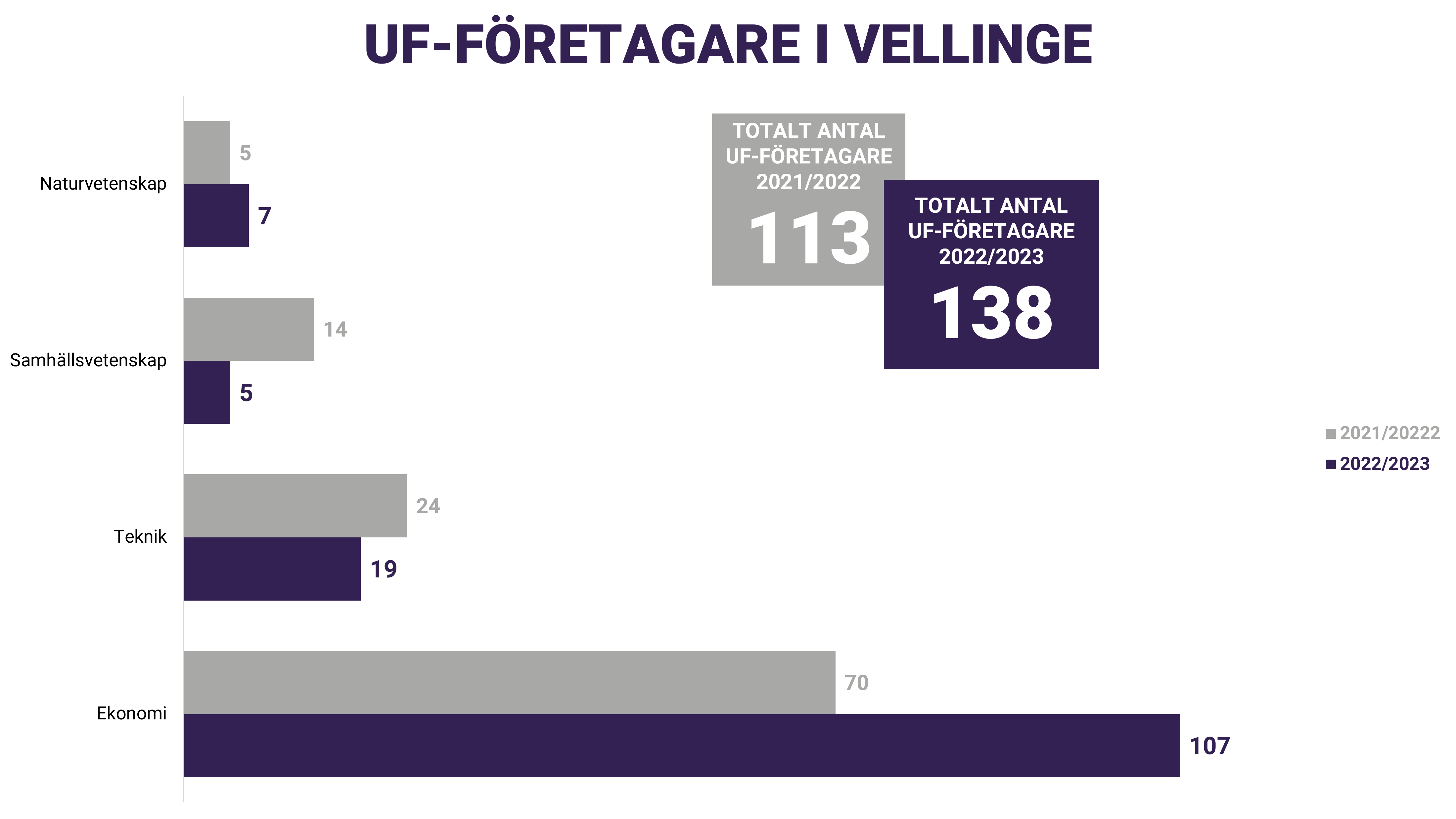 För första gången på tre år så minskade antalet UF-företagare i Skåne. Till stor del beror det på att stora skolkoncerner valt att flytta UF-kursen från årskurs 2 till årskurs 3 och därmed kan vi återigen räkna med dessa skolor 2023/2024. Trots en viss minskning så kan vi fortsatt konstatera att över 3600 gymnasieelever i Skåne får testa på att starta, driva och avveckla företag under sin skolgång. Vår kommunspecifika statistik visar också var större insatser behövs, kopplat till UF-företagande och entreprenörskap, under kommnande läsår.