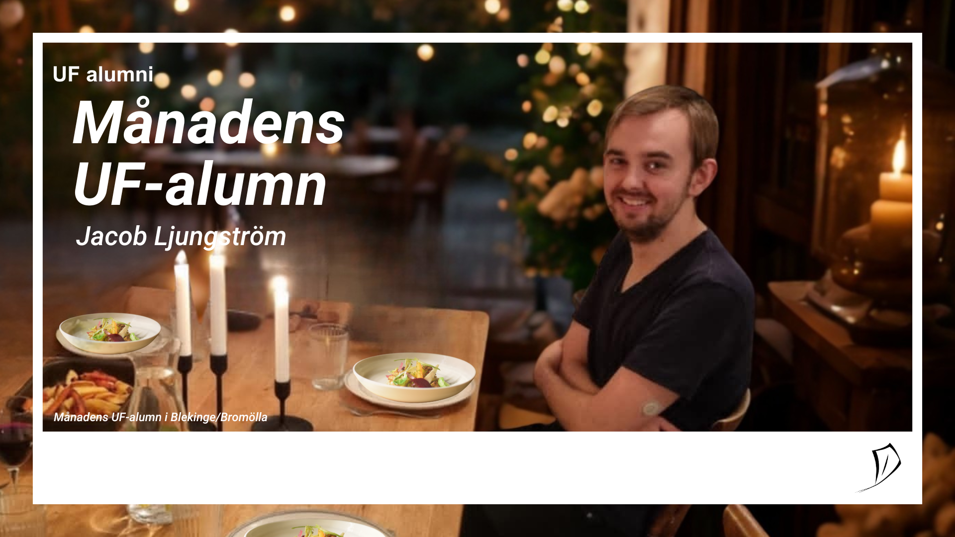Jacob Ljungström drev ett UF-företag där han hjälpte äldre med vardagsteknik. Efter att ha insett att företagande inte var rätt väg just då började han läsa programvaruutveckling vid Linnéuniversitetet och arbeta på Tjärö Hotell och Restaurang, där han kombinerar teknik, service och kreativitet. Genom sina erfarenheter har han utvecklat en förståelse för värdet av tid, investeringar och problemlösning – något som nyligen lett till att han återigen tagit upp entreprenörskapet och nu utvecklar en B2B SaaS-lösning för hotell- och restaurangbranschen i skärgården.