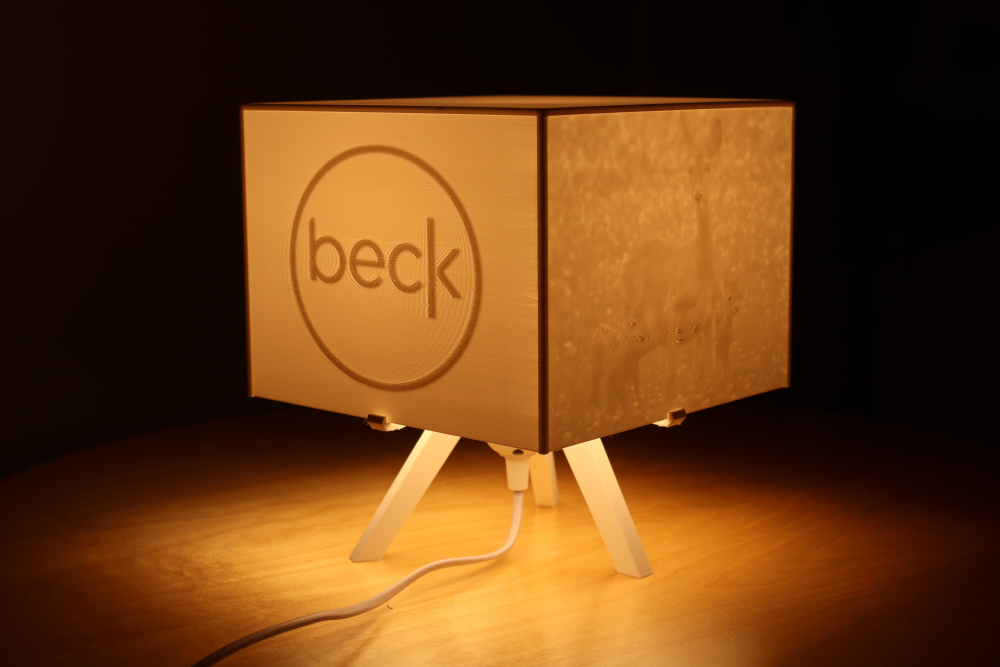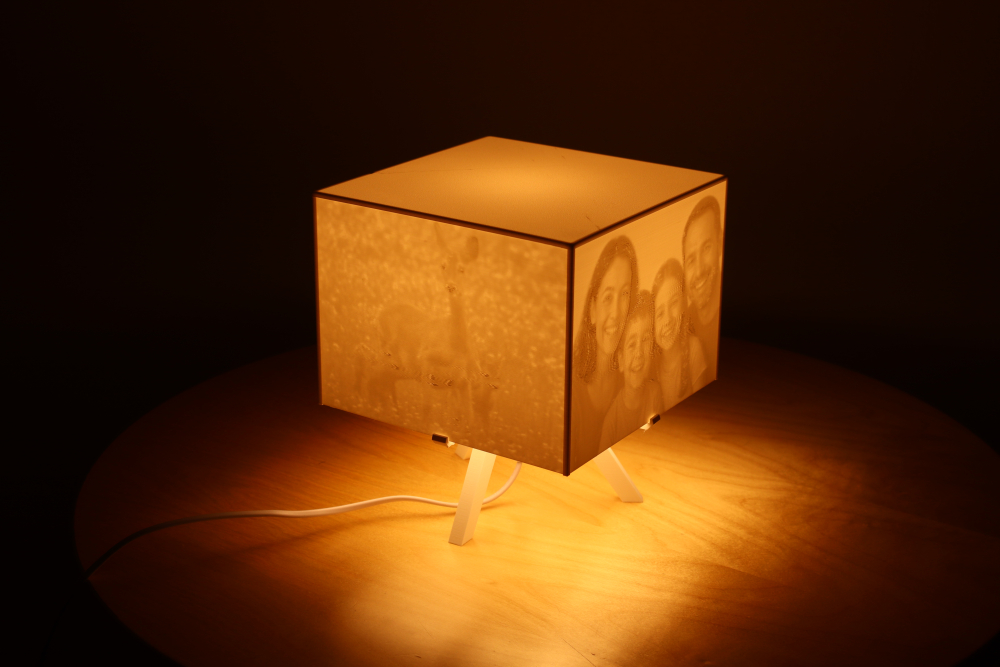 Vår sista idé är en lampa där man skickar in en bild och så printar vi den i olika tjocklekar så att man ser bilden i olika nyassner, som en kub.