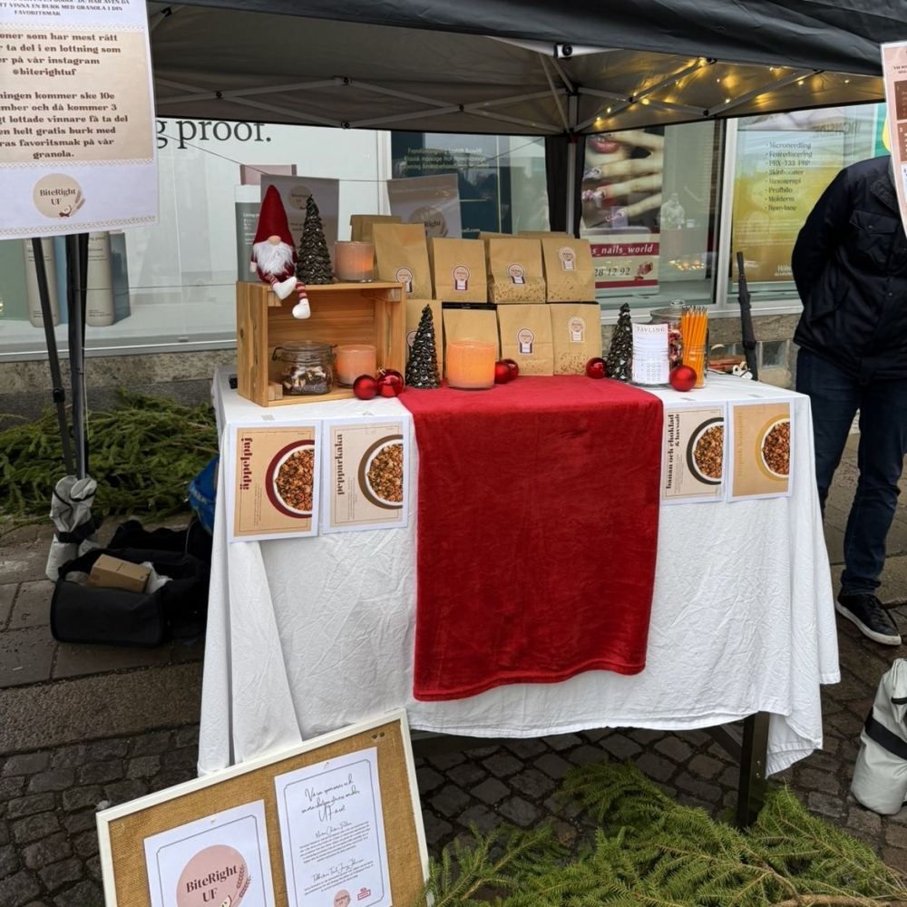 Vi ska sälja och producera hemmagjord granola och bars. Vi kommer torka svinnfrukt från matbutiker som egentligen slängs och använda det i granolan och barsen. Vi kommer även köpa in burkar second hand som granolan kommer att säljas i. Detta för att bidra till cirkulär konsumtion och för att skapa en hållbar produkt. För att vi ska sticka ut som uf kommer vi sälja smaker som inte redan finns på marknaden. Exempel på detta är äppelpaj och chokladboll.