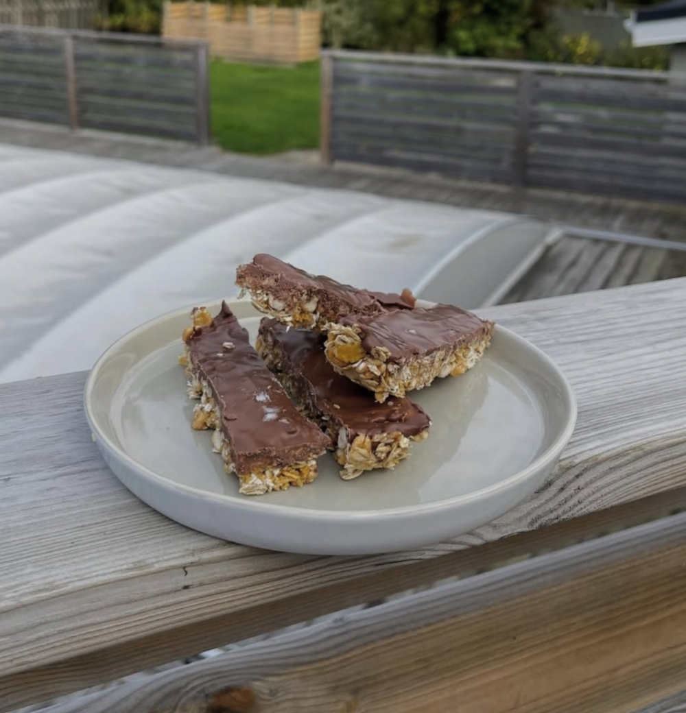 Våra hemmagjorda energibars är ett gott och naturligt mellanmål gjort på havre, nötter och honung, toppat med choklad. De ger snabb energi och är perfekta att ta med till skolan, jobbet eller träningen. Enkla, goda och fyllda med naturlig energi.