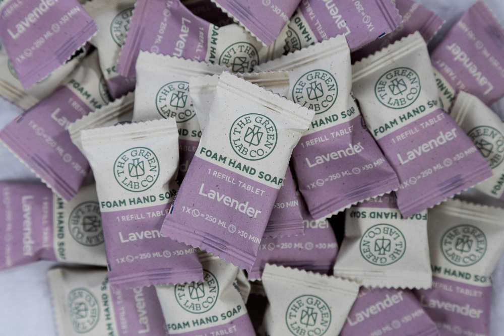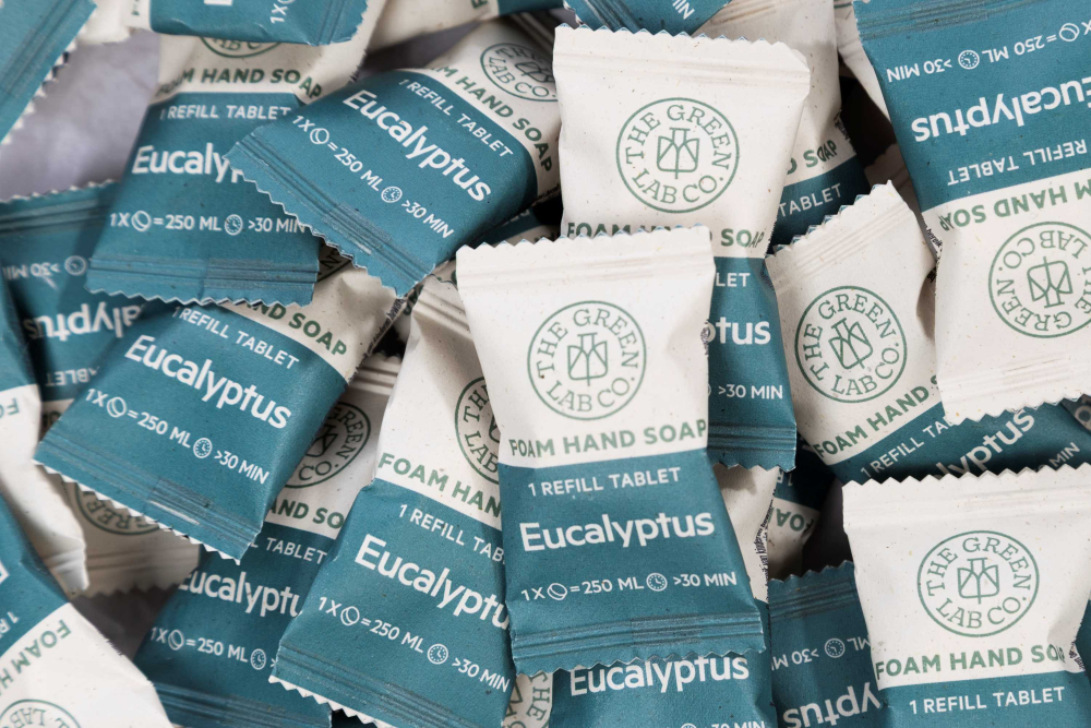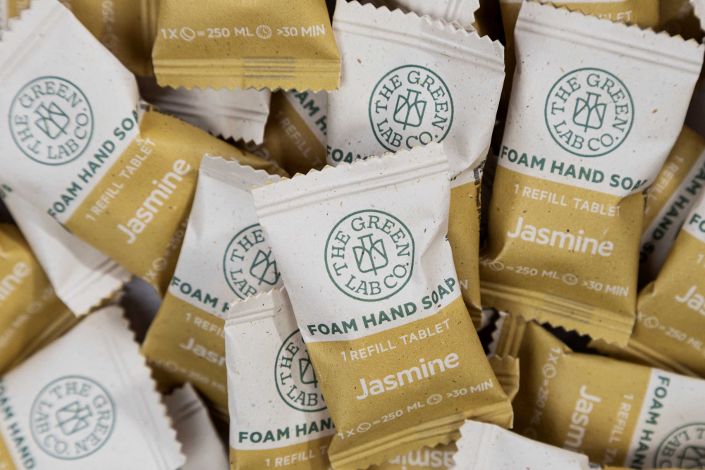 Vi kommer att erbjuda miljövänlig tvål i brus format, tabletten blandas endast med vatten - ett enkelt, hållbart och plastfritt alternativ för vardagens hygien.