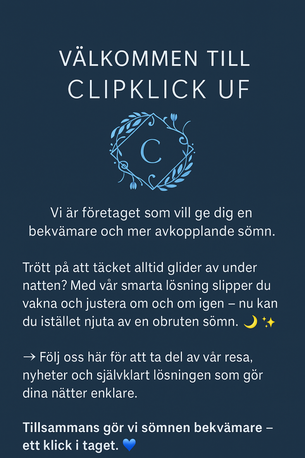 ClipKlick UF erbjuder innovativa produkter som förbättrar din sömnupplevelse genom att hålla dina sängkläder på plats hela natten.