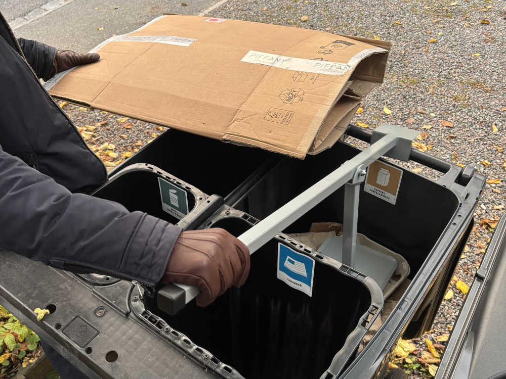 Vi erbjuder en enkel manuell kärlpress som komprimerar avfallet i villaägares fyrfackskärl. Genom att maximera utrymmet och underlätta sorteringen bidrar vi till en effektivare och mer hållbar avfallshantering.