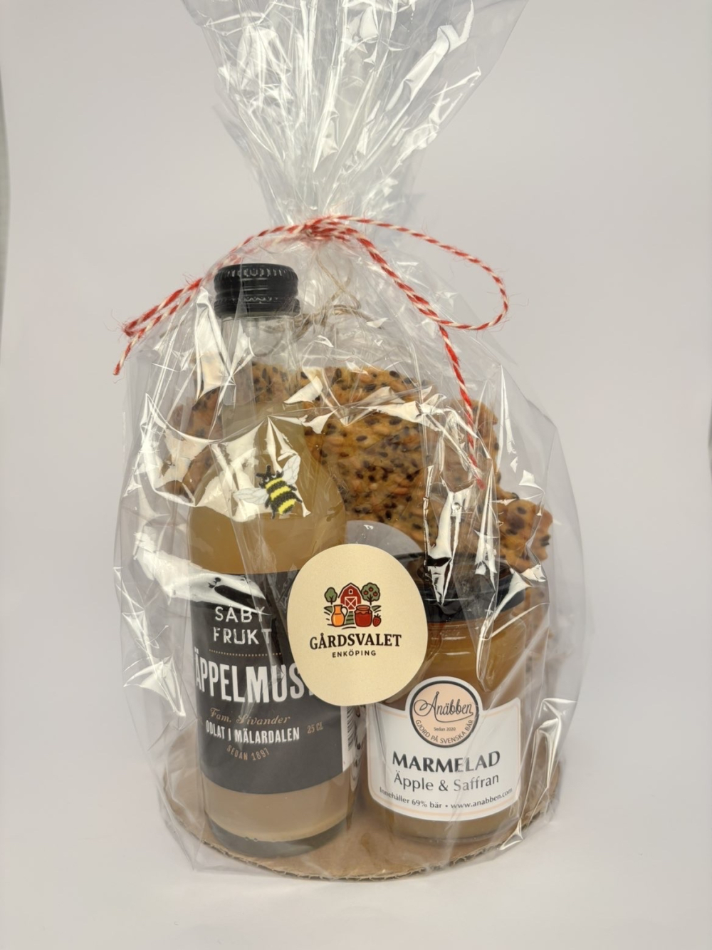 Fortsättningsvis har vi även tagit fram presentkorgar med produkter som blir över från vårat lager som vi erbjuder företag och privatpersoner att köpa som hållbara gåvor.