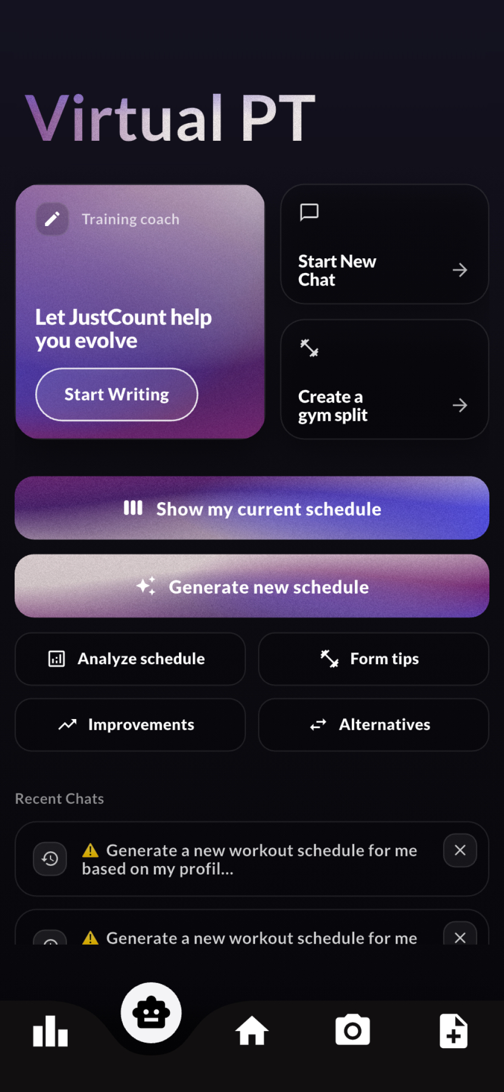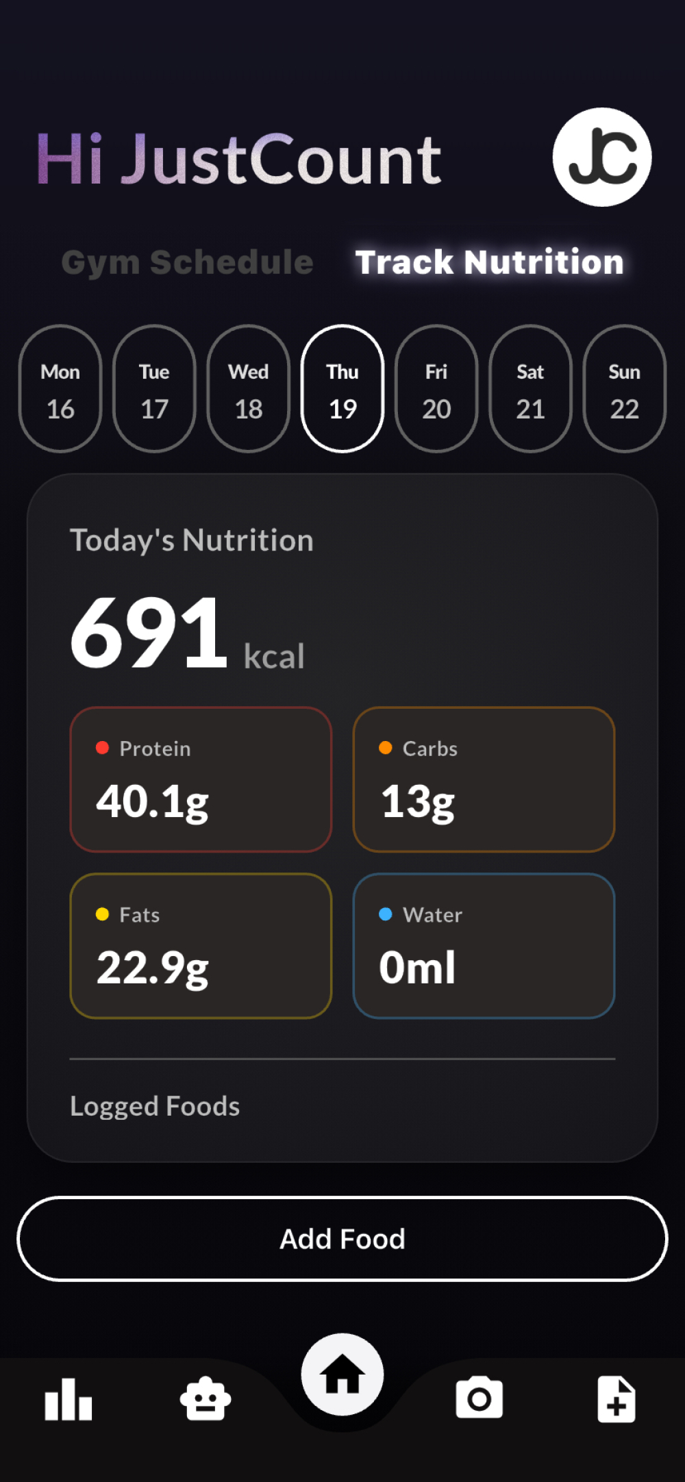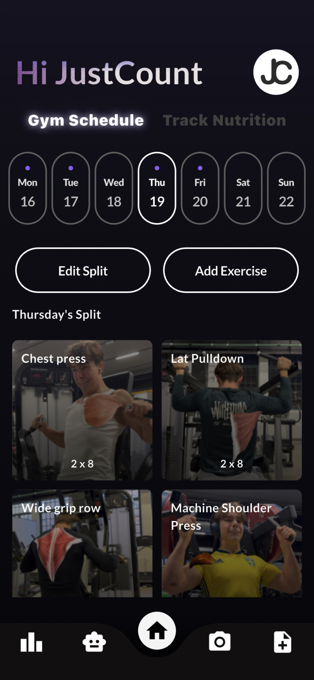 JustCount är en träningsapp som faktiskt utgår från personen som ska träna. Vi bygger scheman och övningar efter mål, erfarenhetsnivå, idrottsroll och kalender, liksom att träna som du behöver, inte som “alla andra”. En målvakt ska inte köra samma upplägg som en anfallare, och en nybörjare ska inte pressas in i ett elitprogram. Appen prioriterar rätt belastning, tydlig progression och pass som går att få in mellan plugg, jobb och allt annat. Målgruppen är nybörjare, gymmare, atleter och alla med pressade scheman. För motivation har vi en BeReal-aktig funktion, månatligt leaderboard med priser från partners. Intäkterna kommer från premiumabonnemang och paket för lag, föreningar och skolor. Allt är enkelt att följa i en tydlig veckovy med checkrutor och vilodagar.