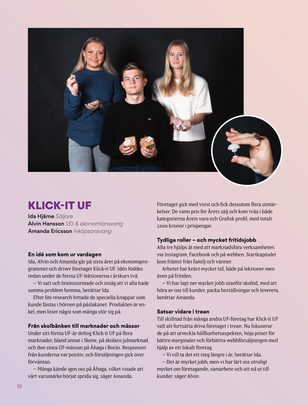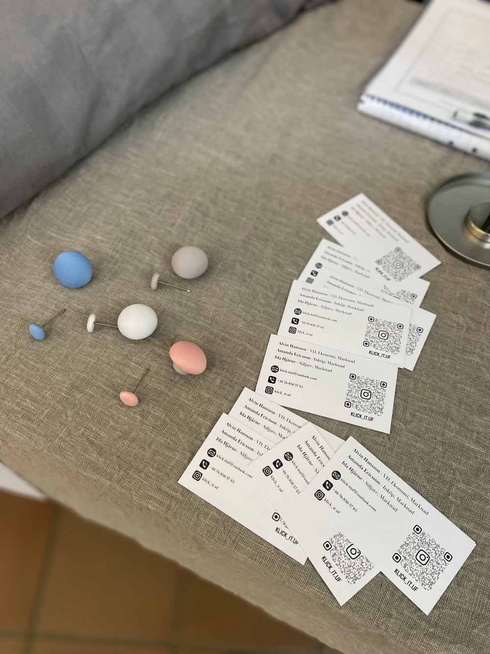 Vår affärsidé på Klick-It UF har en lösning för en bekvämare sömn. Vi erbjuder kit med fyra justerbara knappar som fäster ihop påslakanet med täcket så man undviker att täcket glider isär från påslakanet. Med vår produkt förbättrar vi sömnkvaliteten, men också tillgodoser vi behovet av funktionalitet och stil, med en modern design som passar in i alla rum. Vi riktar oss mot inredningsmedvetna kunder som värdesätter både komfort och estetik, och som söker praktiska, snygga och hållbara lösningar för sitt hem.