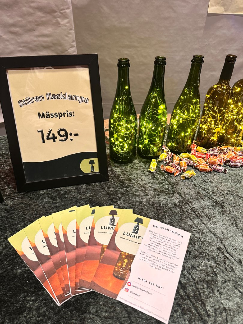 Vi skapar unika och hållbara lampor av återvunna glasflaskor, där varje lampa blir ett personligt inredningsobjekt som sprider mysig stämning och lyser upp rummet.