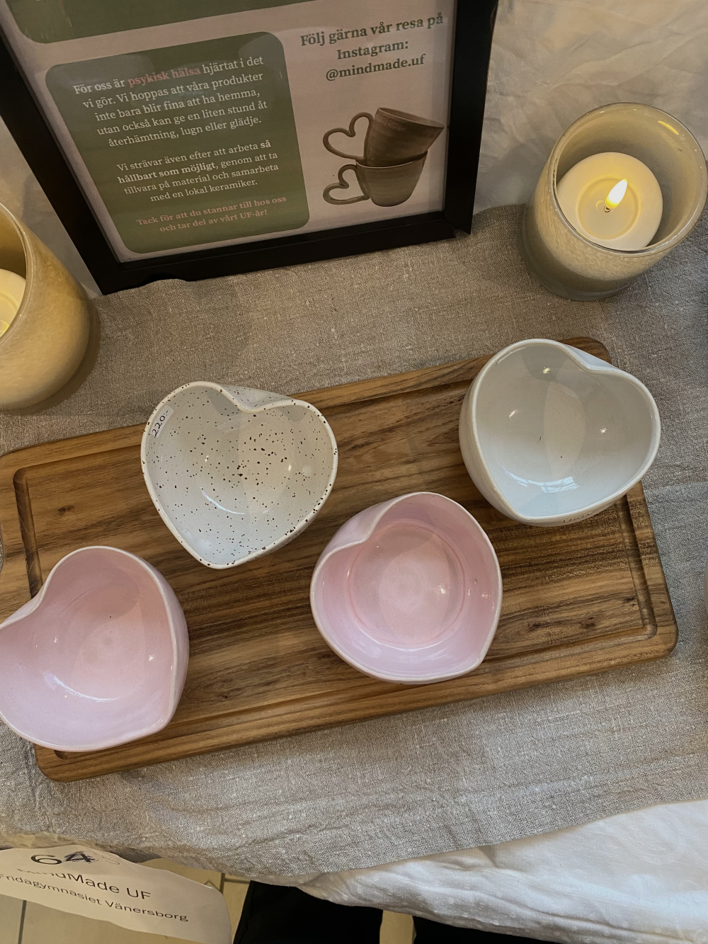 MindMade UF säljer unik keramik med korta peppande budskap på. Vi vill att våra produkter ska sprida glädje och motivation i vardagen för att främja psykiskt välmående. MindMade UF producerar all keramik själva i samarbete med en lokal keramiker och jobbar för att keramiken ska tillverkas på ett hållbart sätt.