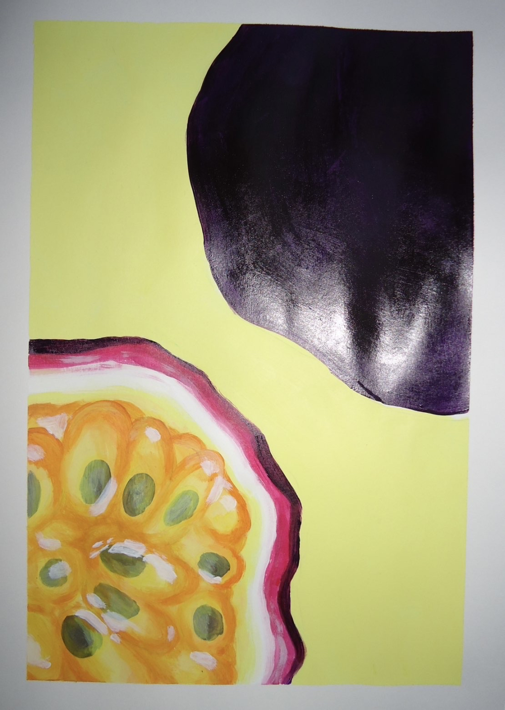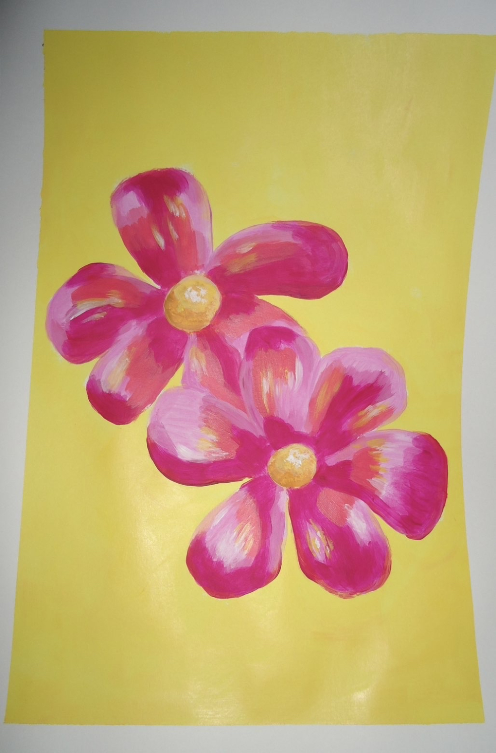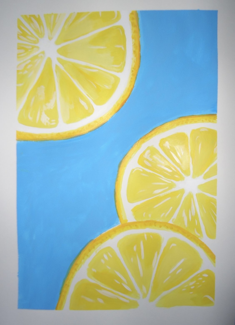 Färgglada och somriga målningar, som är målade på tjockt papper i A3-format.