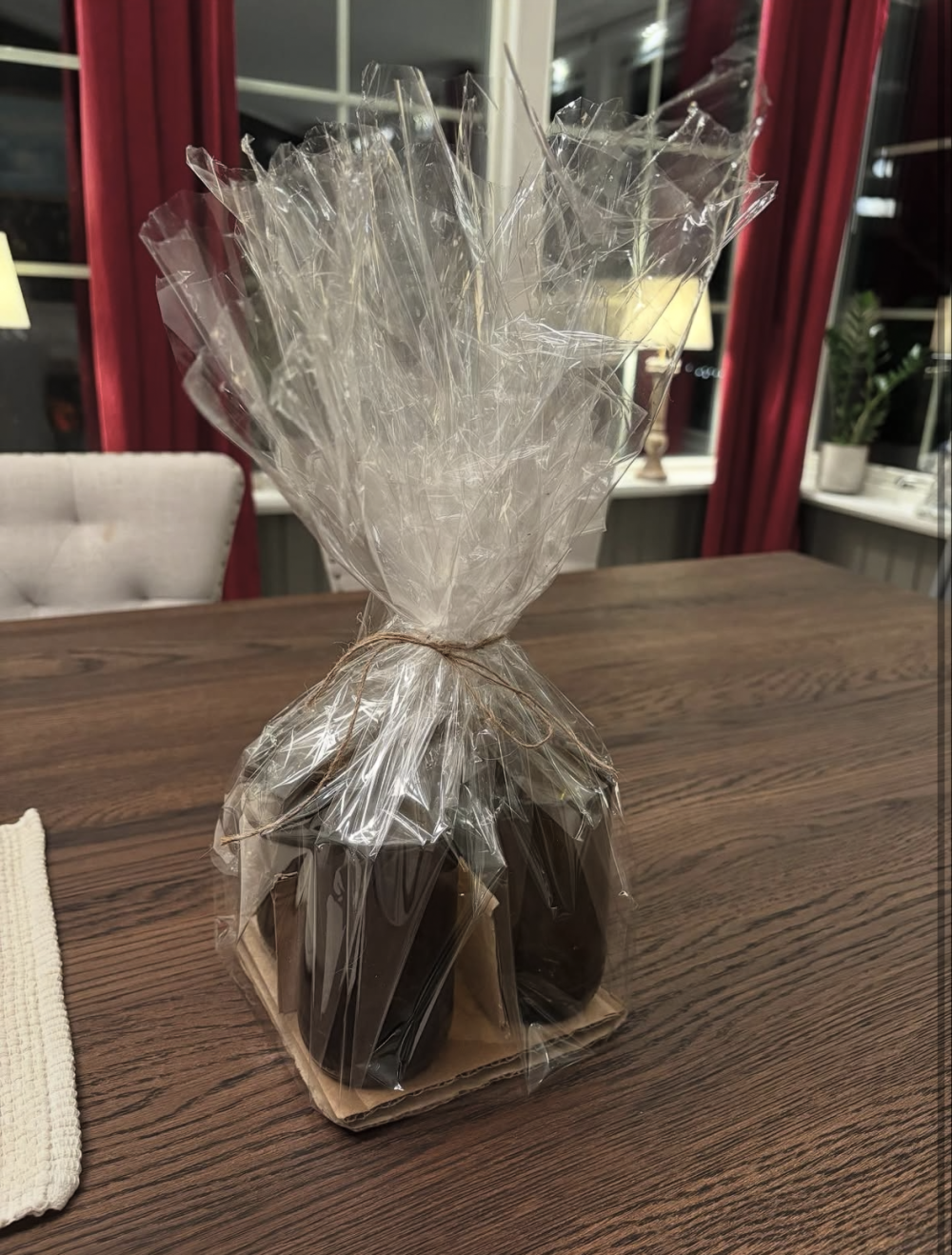 Glas och ljus tillverkade utav återvunna glasflaskor som vi kapar. Ljusen har vaniljdoft.