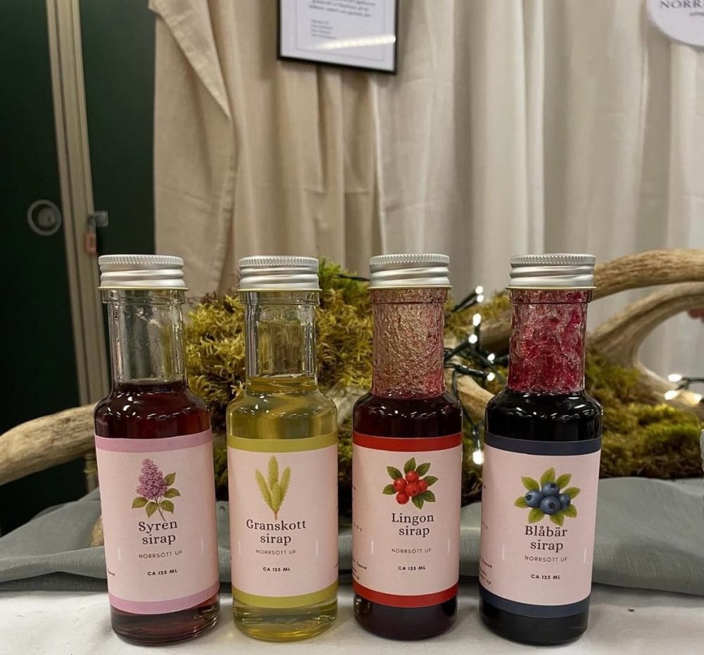 Vi på Norrsött UF är tre tjejer som brinner för att ta vara på de resurser som finns i den norrländska naturen. Våra siraper och safter är helt egengjorda, från bär och växter som vi själva plockat i den norrländska naturen.