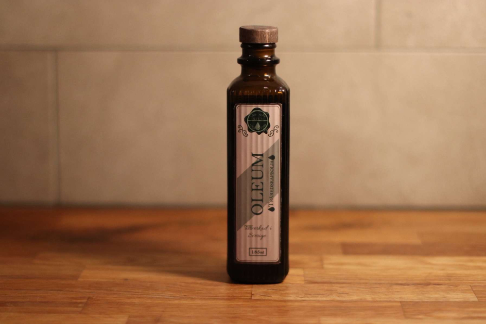 Vår produkt är en naturlig träolja. Receptet består av hampfröolja, MCT-olja och E-vitamin. Den paketeras i en återbrukad glasflaska med en stilren design och försluts med korkar i trä. Vår träolja vårdar träet, bevarar kvalité, förebygger slitage och förlänger dess livslängd. Passar för såväl skärbrädor, såväl skevar, gafflar och andra redskap av trä.