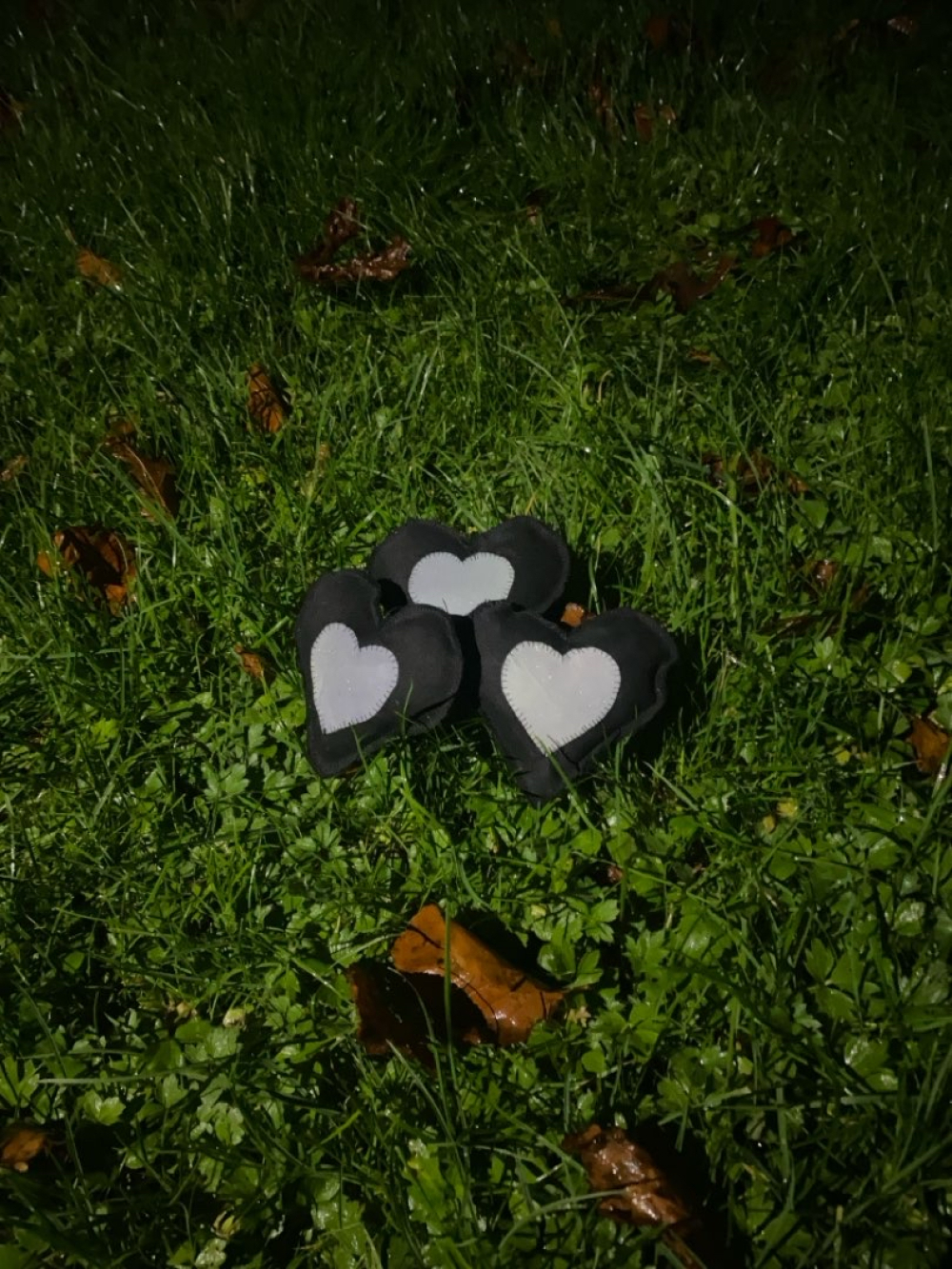 Handgjorda reflexaccessoarer tillverkade av återanvändbart material där ingen är den andra lik. Så småningom kommer det finnas olika varianter att välja mellan.