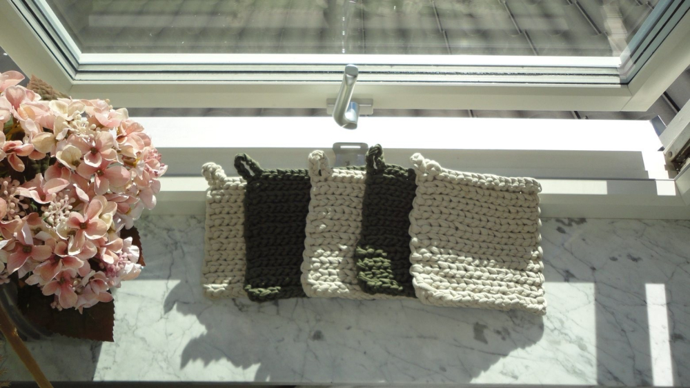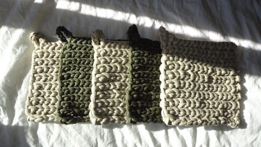 När vi skapar våra produkter använder vi ett återvunnet bomullsgarn. Dessutom virkar vi produkterna för hand, vilket gör varje produkt unik. Eftersom garnet vi använder är återvunnet kan nyans och tjocklek variera något, men vi på SafeServe UF anser att det endast ger produkten lite extra charm och en unik touch.