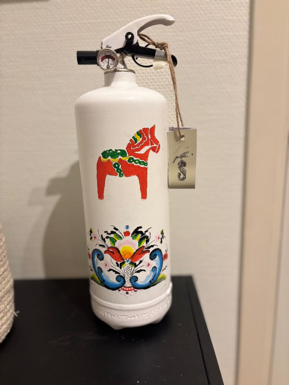I vårt arbete lägger vi stor vikt vid säkerhet. Vi använder endast godkända brandsläckare och designar dem på ett sätt som inte påverkar deras funktion. Munstycke, tryckmätare och andra viktiga delar lämnas alltid orörda.