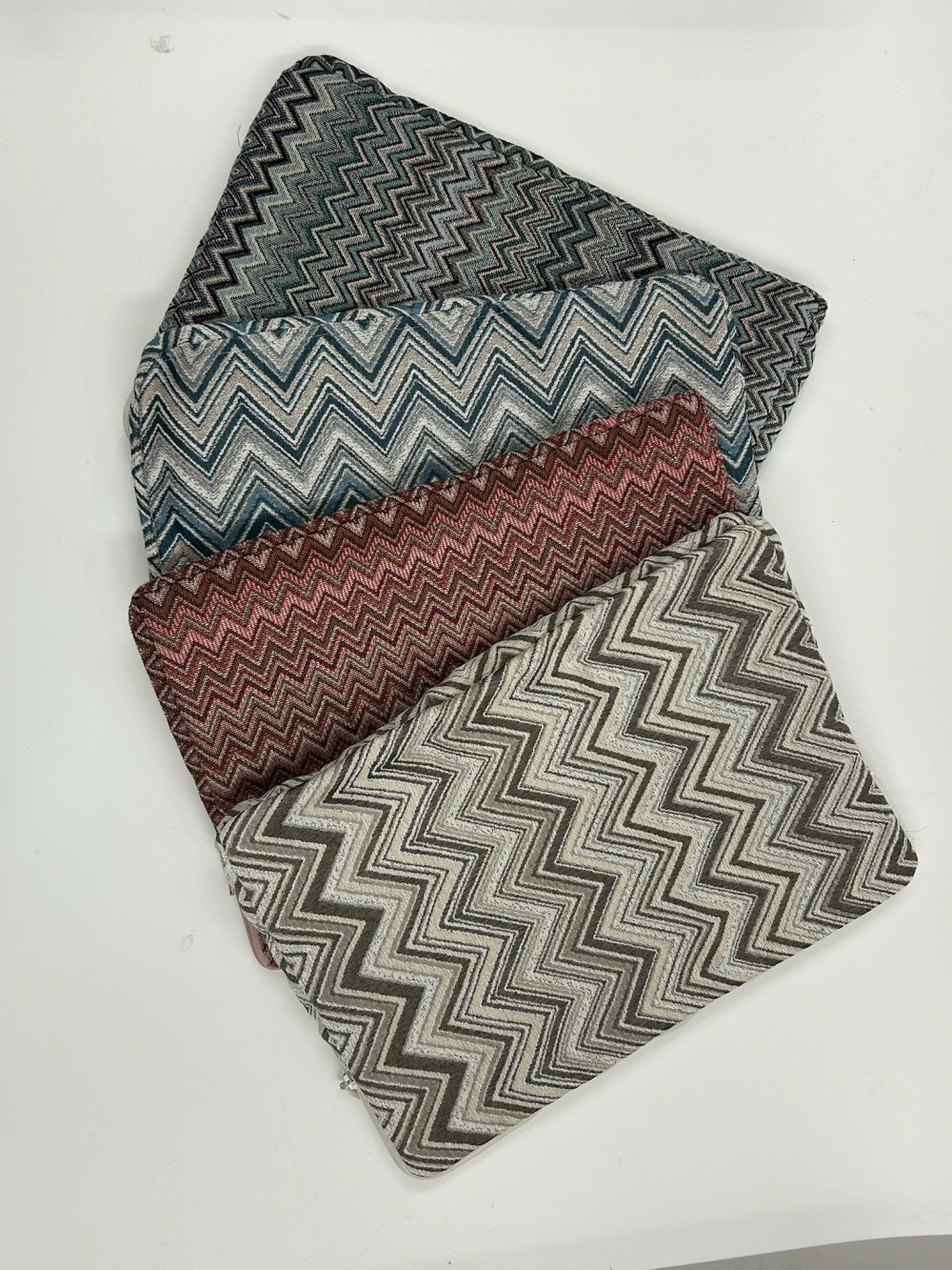 Genom att arbeta med delvis åkerbrukare material ger vi nytt liv åt noggrant utvalda tyger med starka mönster och färger, samtidigt soja vadderingen består av second hand-fleece. För att skydda innehållet behandlas fodralen med bivax, vilket gör dem naturligt vattenavvisande utan plast. Det är alltså en funktionell lösnings som bevarar både tygets känsla och miljön.