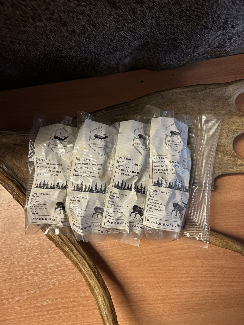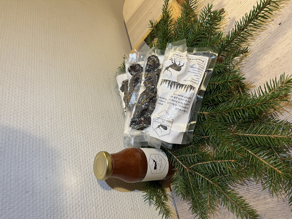 Närodlat och hållbart producerat beef jerkey på viltkött och marinad med smaker inspirerade av skogens smaker.