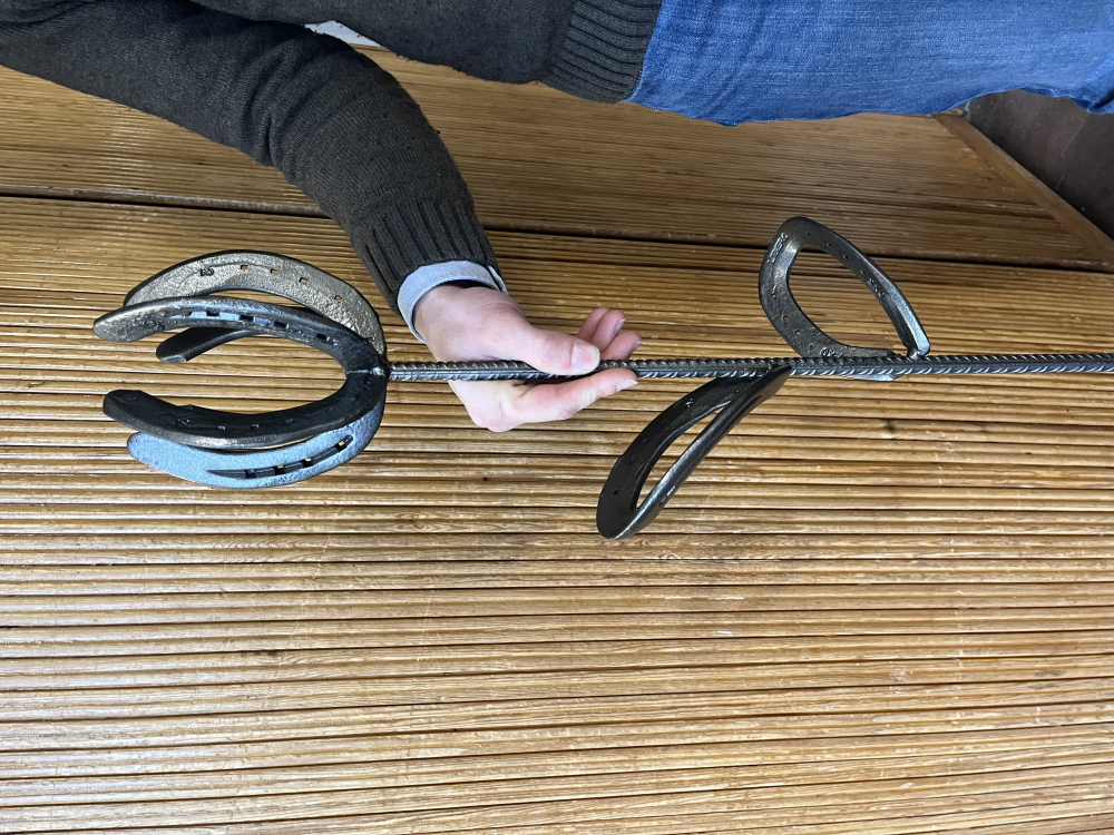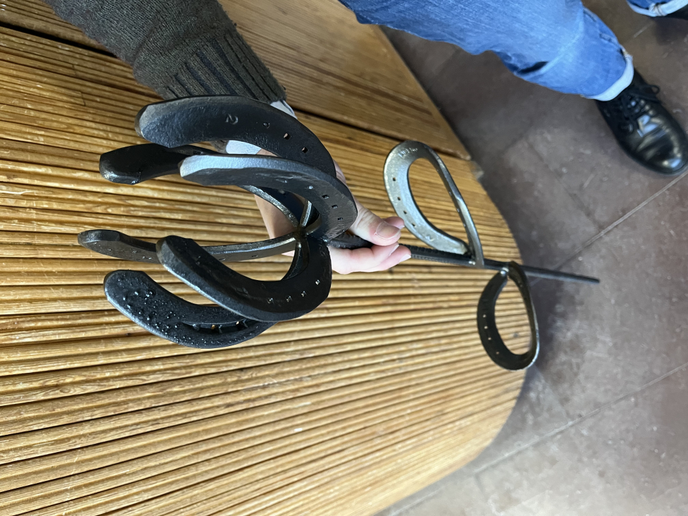 Vår produkt är gjort av återanvända hästskor som vi kommer svetsa ihop till snygga designs. Vi kommer använda häst skor som i kommer svetsa till önskad design och sedan behandla med hammarlack för att få en snygg och clean design på år vara. Man kommer kunna göra våran produkt personlig om så önskas annars kommer det finnas företagets modeller.