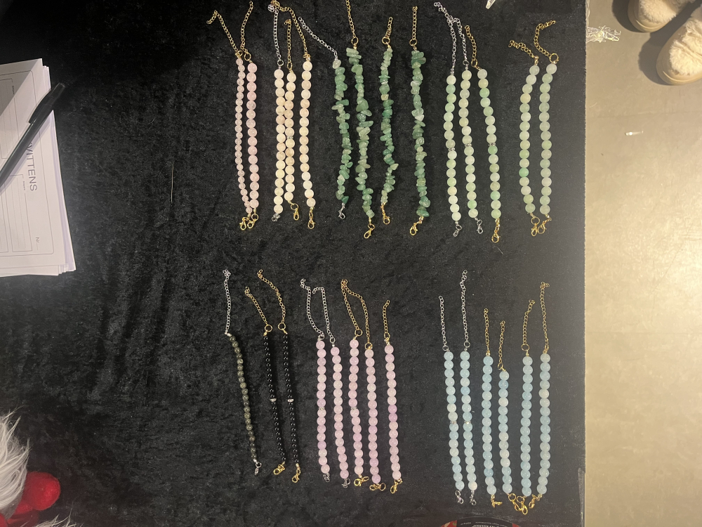 Vi ska tillverka och sälja pärlarmband med ett spänne och knäppe så att det går att anpassa till allas egna storlekar.
