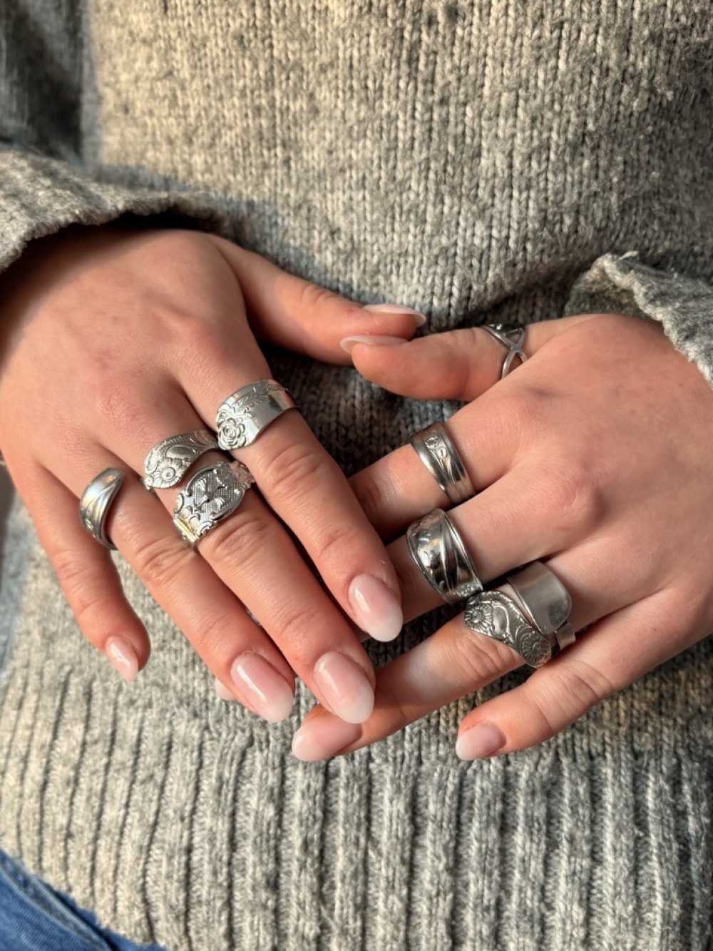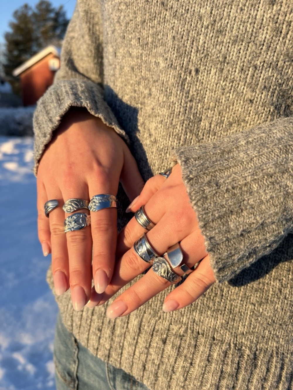 Varje ring vi skapar är ett handgjort smycke tillverkat av återvunna bestick, vilket ger varje ring en unik karaktär och historia. Våra ringar kombinerar stil och hållbarhet, och varje smycke är unikt formgivet för hand för att passa just dig.
