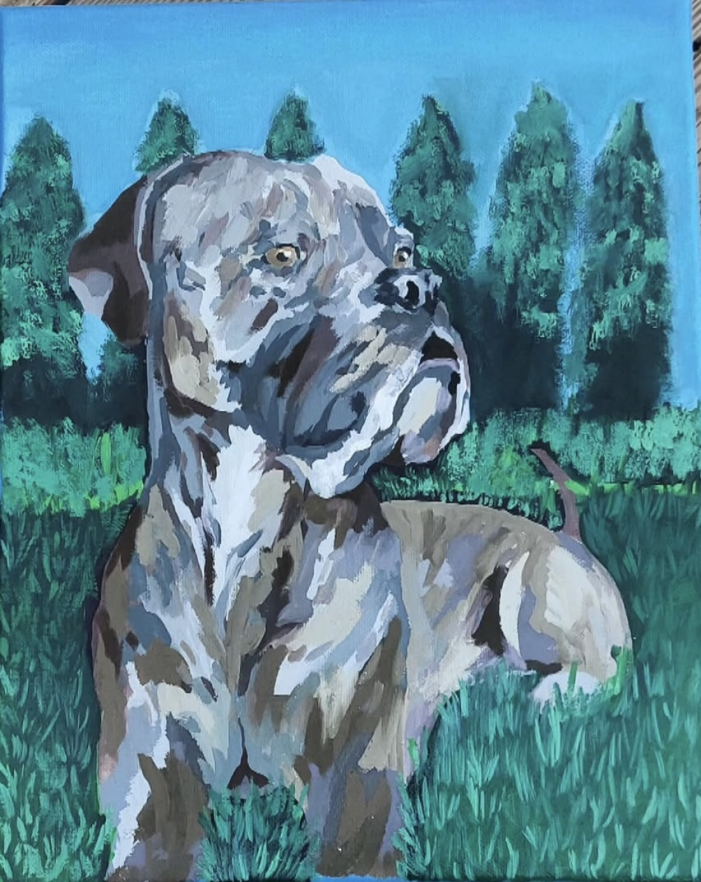 Min idé är att sälja min konst och ta beställningar. Jag målar på stora, men även små tavlor, både i oljefäg, akryl och kol. Porträtt av djur är det jag är bra på, och det är just beställningar på personers djur som är min idé, eller åtminstone det jag fick pusha för. Jag har en Instagram där bilder och videos på min konst läggs upp, det är även bland annat där som kontakten mellan kunder och mig sker. Jag håller på att göra en hemsida med där jag ska kunna lägga ut min befintliga konst så att människor kan handla där.