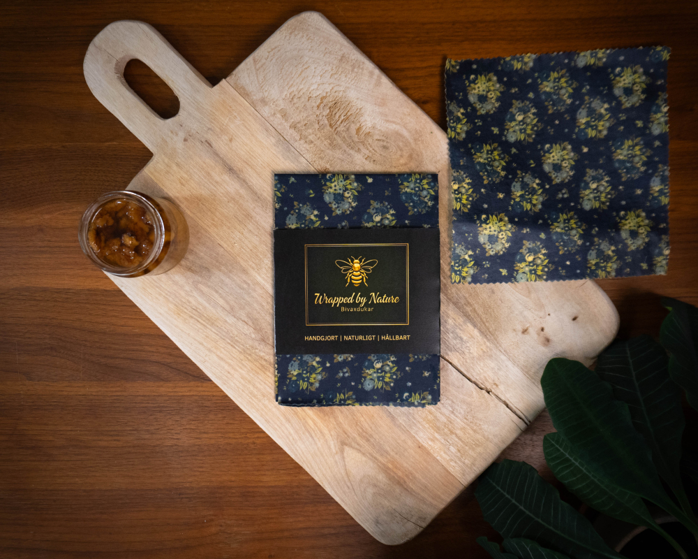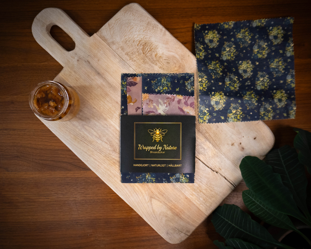 Jag är en ensamföretagare som säljer stora handtillverkade närproducerade bivaxdukar, med fokus på hållbarhet. De stora bivaxdukarna är 40x40cm och av restmaterialet har jag skapat ett 4-pack med storlekarna 10x10cm, 2st 20x20cm och 30x30cm.