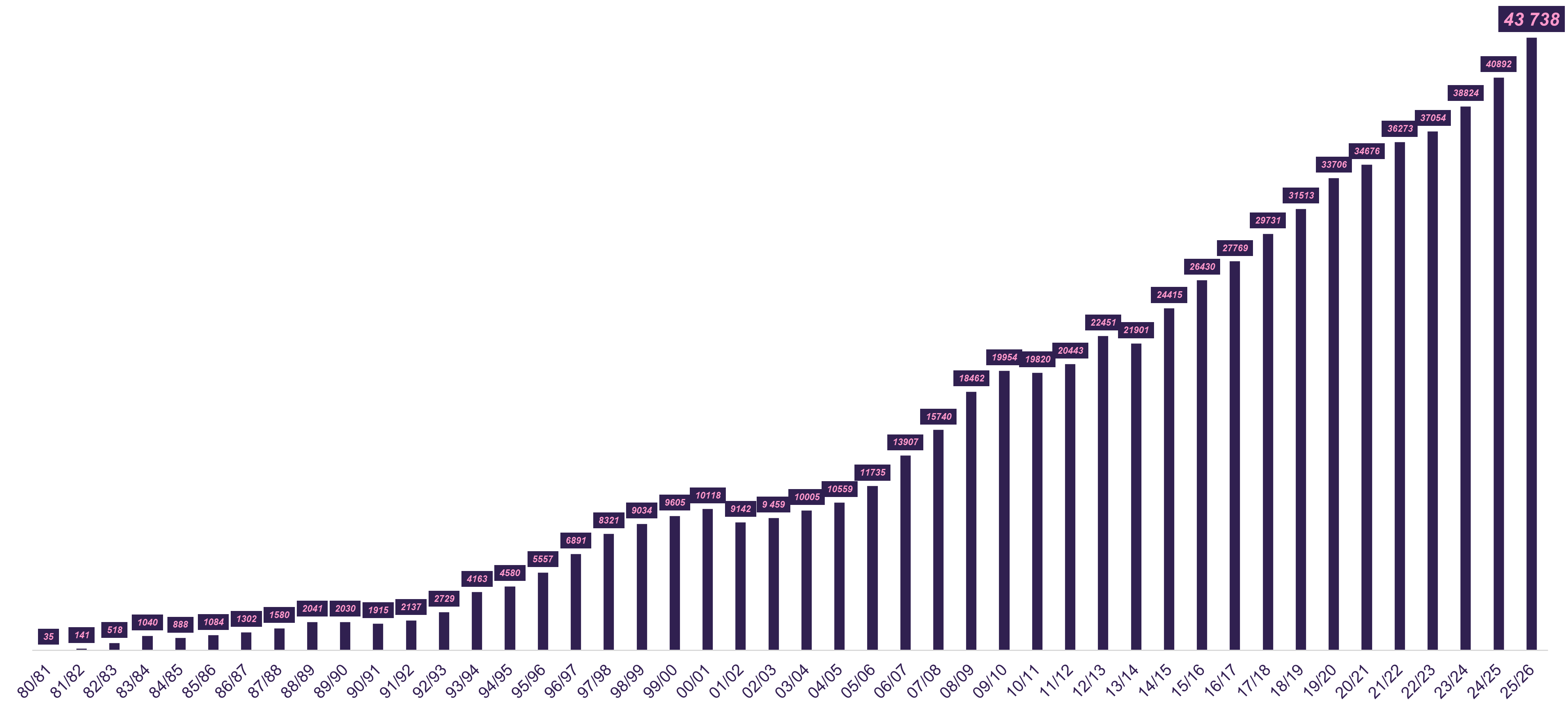 Antal UF-företagare sedan starten 1980