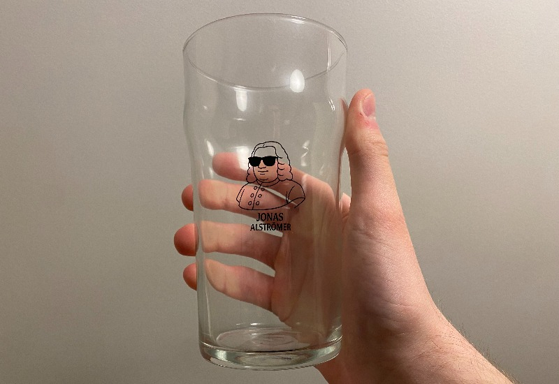 Ett bastant och stilrent ölglas med en modern och skämtsam avbildning av Jonas Alströmer. Glaset rymmer hela 57 cl (Imperial Pint) och passar bra till både fest- och hemmamiljöer.