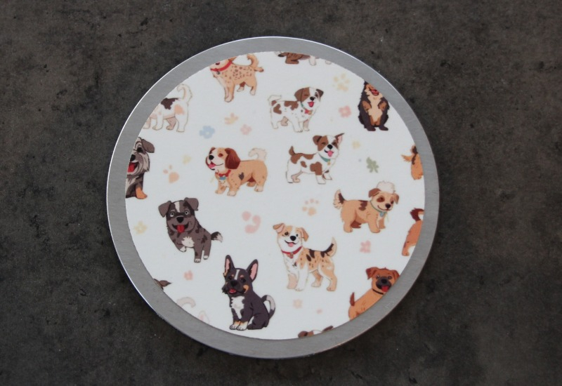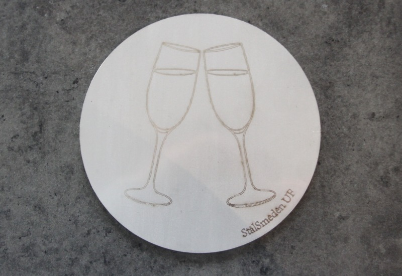 Runt dryckesunderlägg i spillmaterial av stål. Underlägget är 10 cm i diameter och har svart sammet på undersidan för att inte slita eller repa bord. Välj mellan gravyr, klistermärken med motiv, utskurna bokstäver, utan gravyr och klistermärke eller specialdesigna själv med gravering eller klistermärke!