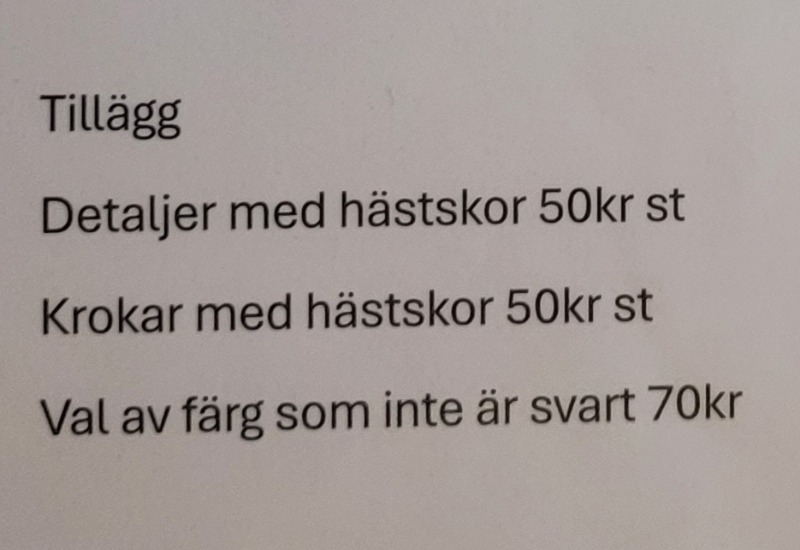 kan även till verka efter specialmått, då skriver man på Facebook. priset räknas då om efter materialkostnaden.