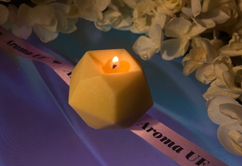 Ett handgjort ljus med modern, geometrisk design som sprider en mjuk och behaglig doft. En stilren detalj för varje rum. Tillverkas i flera dofter och färger.