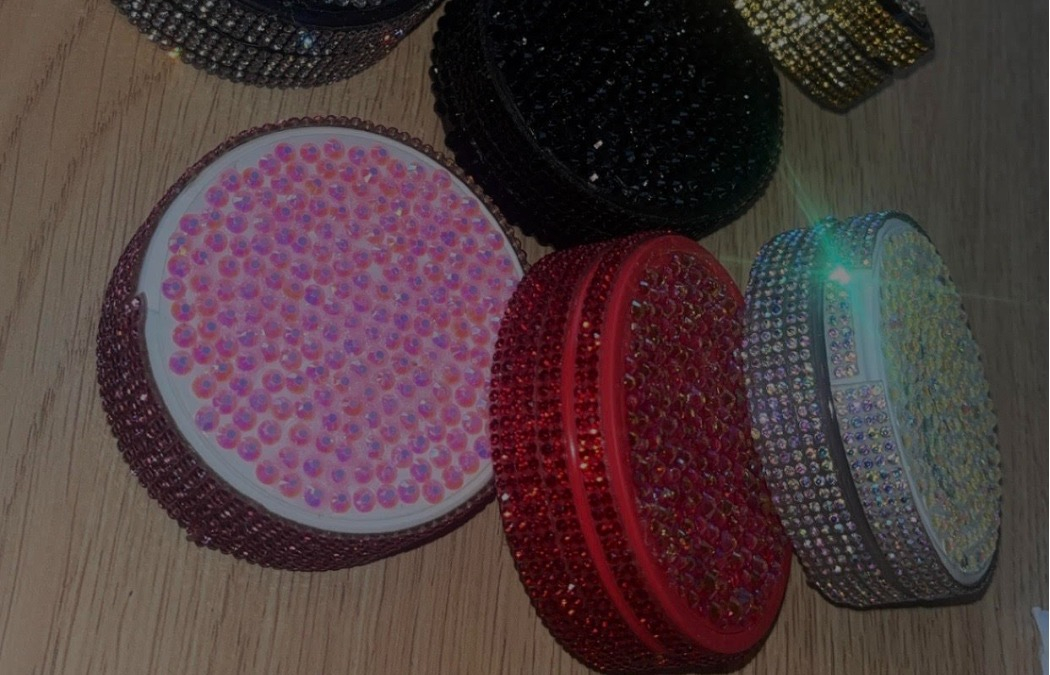 Vi säljer glittriga förvaringsdoser som är gjorda utav återbrukade snusdosor. Dessa kan användas som förvaring utav smycken om man ska iväg så att man slipper lägga det i väskan och tappa bort det. Man kan även har det till tuggummi. Så om man har tuggat klart tuggummit så kan man lägga det i locket på dosan istället för att kasta det i naturen.