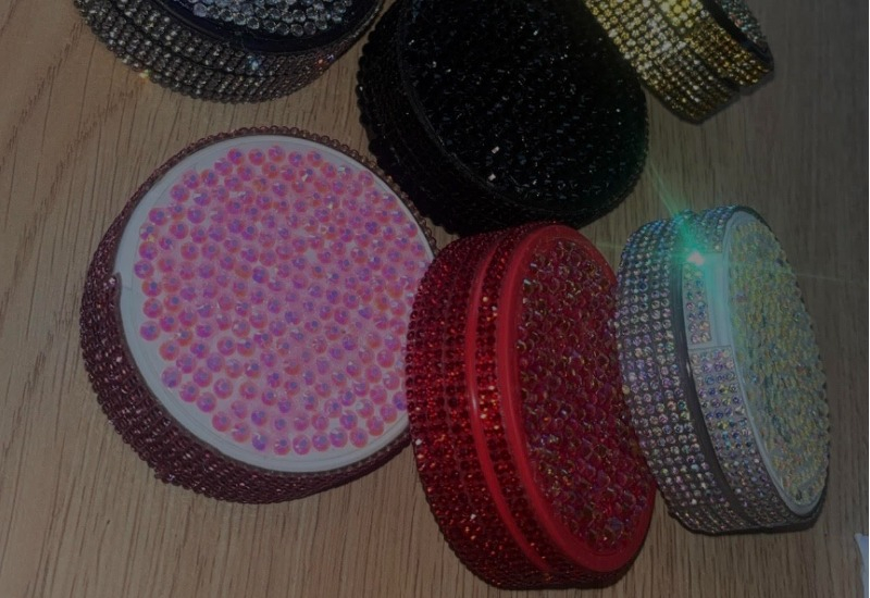 Det är återbrukade snusdosor som vi sätter på dimondes på. Dessa doser är bra till förvaring utav små saker tillexempel smycken. Man kan även använda det till tuggummi