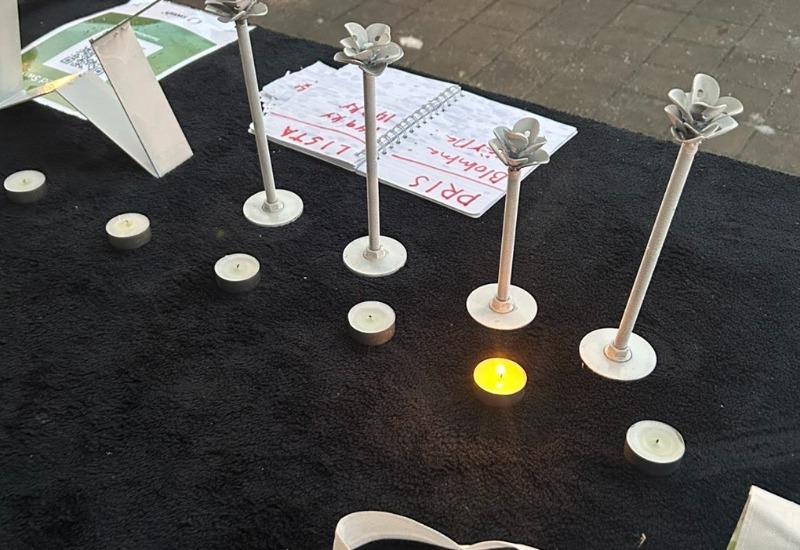 En ros som vi har svetsat ihop med metall, muttrar och brickor.