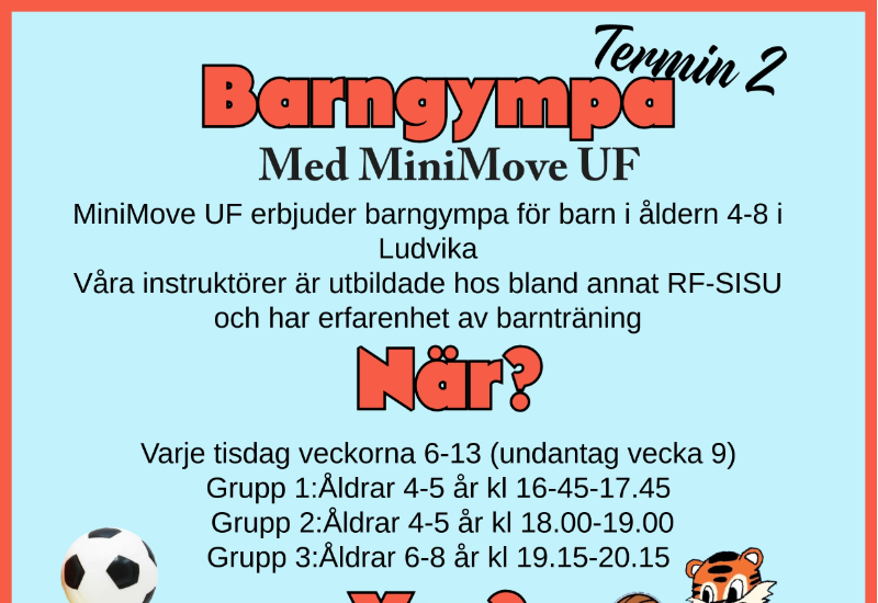 Barngympa - 1 pass i veckan, varje vecka i 7 veckor, ledd av RF-sisu utbildad personal.