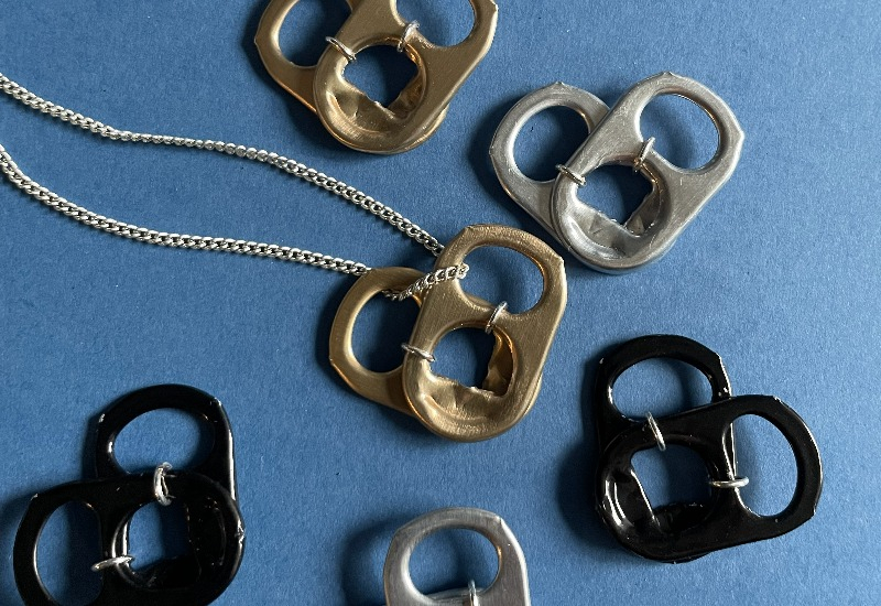 På ReTab Design kan du hitta smarta och snygga produkter tillverkade med hjälp av pantburks-flikar som basmaterial. Du kan bland annat hitta våra väl designade halsband. Våra halsband har en unik design med ett hjärta i mitten, skapat av två samansatta pantburks-flikar. Kedjan är i silver, dock kan du välja att ha ditt hjärta i tre olika färger, Guld, silver och svart.