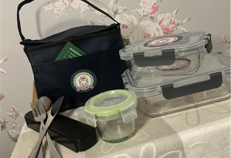 (Alla storlek matlådor 3st + frysväska + bestick)