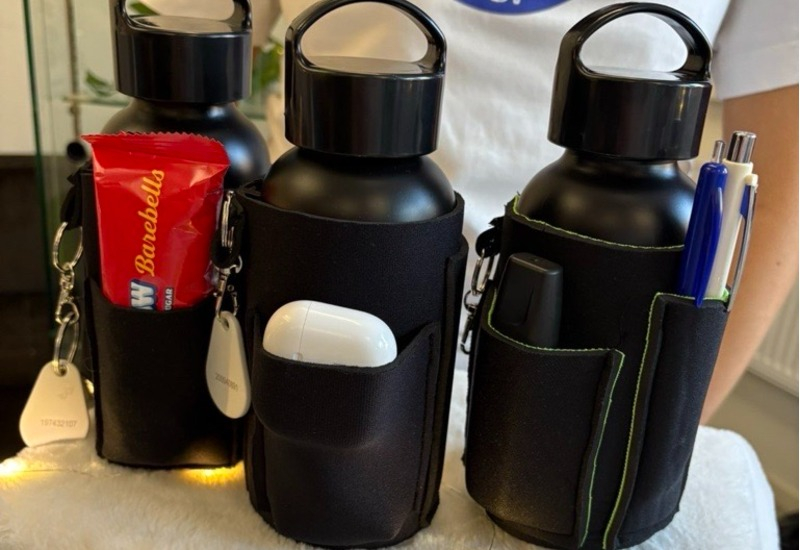 Ett fordal tillsammans med en vattenflaska för dina småprylar under dagen. Ha med dig den till skolan, jobbet eller gymmet och förvara på. Vid ett köp så går 50kr till röda korsets hjälporganisation.