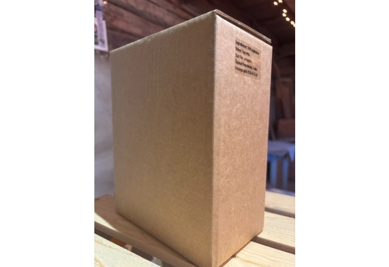 Lokalt mustade muster, går att köpas som 33cl glasflaskor och 3L Bag-in-box.