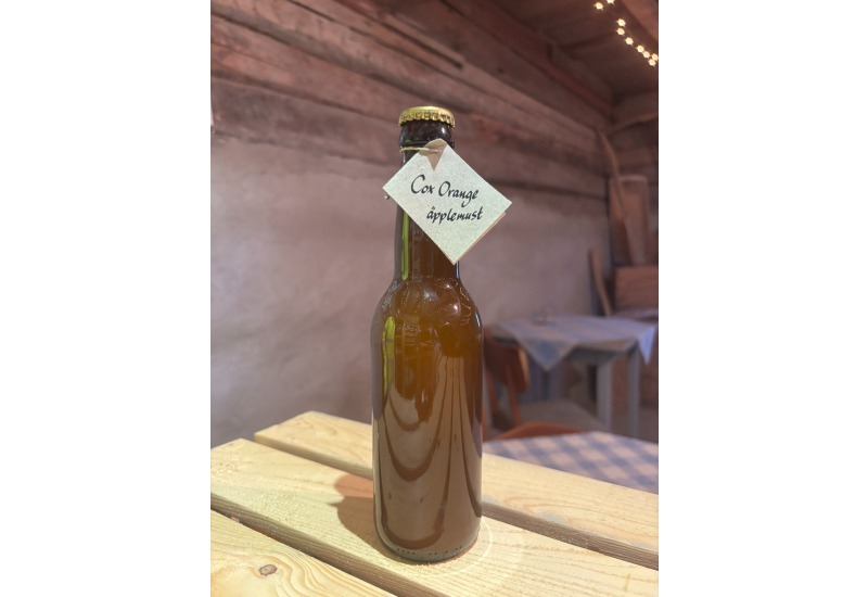 Söt och syrlig must med rik, aromatisk smak. Lokalt mustade cox orange äpplen.