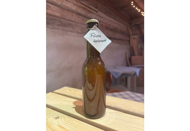 En söt och mild äppelmust med en rund smak gjord med Filippa äpplen.