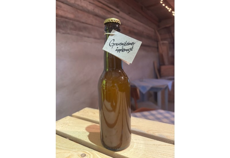 En syrlig must med tydlig äppelarom mustad lokalt med gravensteiner äpplen.