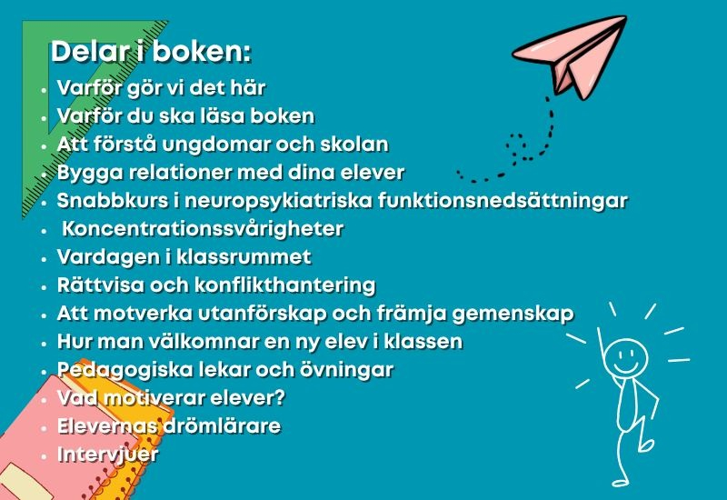 Boken är lättläst och pedagogiskt upplagd. Den innehåller konkreta listor, egna erfarenheter, berättelse från skolpersonal och tips som vi anser lärare vill ha, men inte får i sin utbildning.