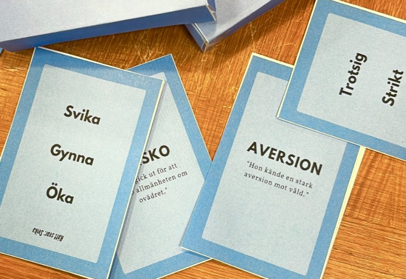 Träna ditt svenska ordförråd på ett roligt, socialt och skärmfritt sätt med denna kortlek. Den är särskilt framtagen för dig som vill utveckla ditt språk och förbereda dig inför högskoleprovet. Varje kort innehåller ett svårt ord och en exempelmening som hjälper dig att förstå ordet i vardaglig kontext. Du får tre alternativa ord, varav en är den rätta synonymen, det rätta svaret finner du på baksidan av kortet. Kortleken kan användas både individuellt och i grupp. Turas om att läsa upp meningarna och gissa ordens betydelse. Den passar elever, studenter, språklärare och alla språkintresserade som vill boosta sitt ordförråd.
