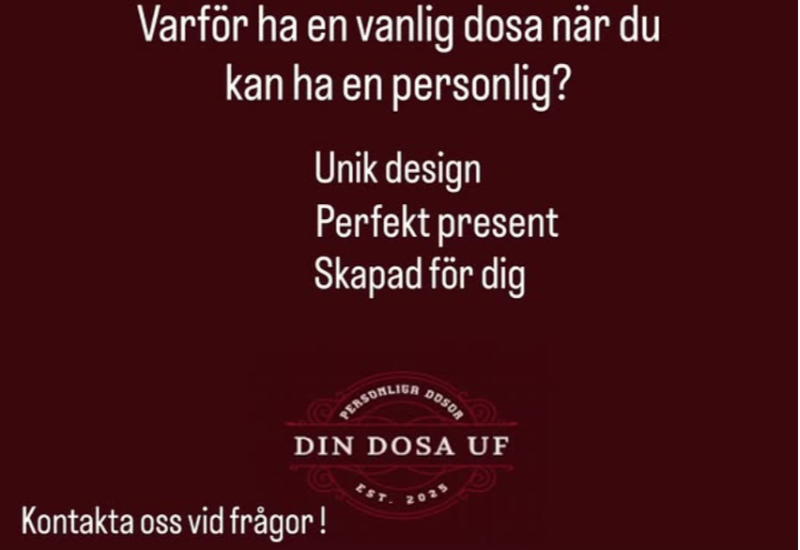 Vi skapar personliga dosor med valfria bilder som kunder skickar in.